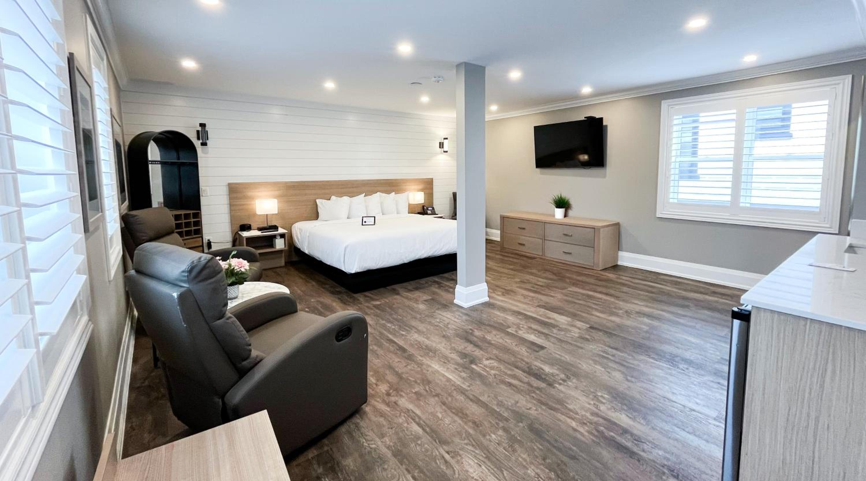 Experience comfort and convenience at Colonial Hotel & Suites, located just 800 meters from the stunning Grand Bend Beach. Each room features a wardrobe, private bathroom, flat-screen TV, and air conditioning. Some rooms even offer a charming patio with city views.