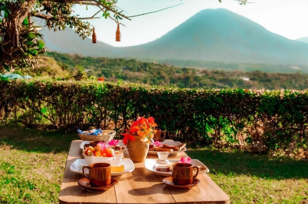 This was such a great hotel. The views from the balcony room were so beautiful. I think we were the only guests at the time of our stay, we stayed two nights. It was very peaceful. They offered made to order breakfast that they brought to the room for us. They also had a restaurant that they let us decide if we wanted to eat in our room or at the restaurant. Location is great for the town. Everything we had was really good. The town is great to see the authentic culture of El Salvador. There is a bar, restaurants, and shops. We did not visit Santa Ana, but we did visit Cafe Albania in Apaneca which was only a 30 min uber. Overall, this a great place to stay, great beds, great views. Something different than the expensive commercial hotels.