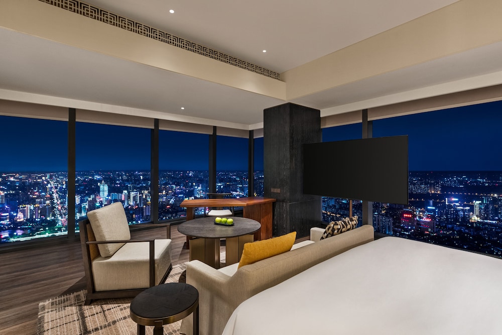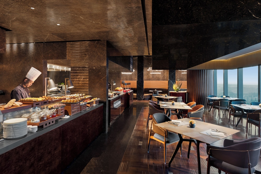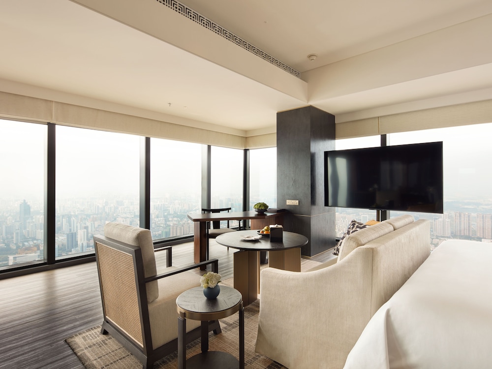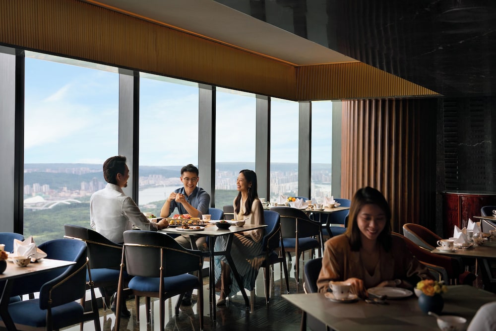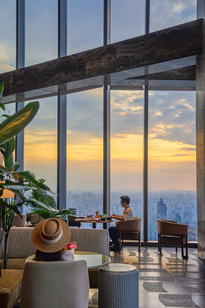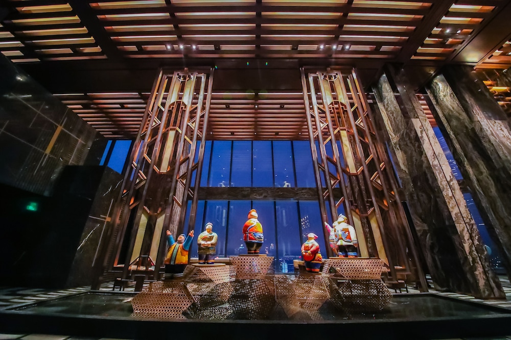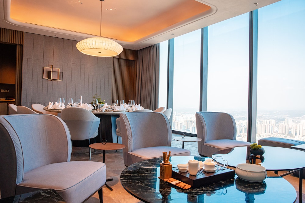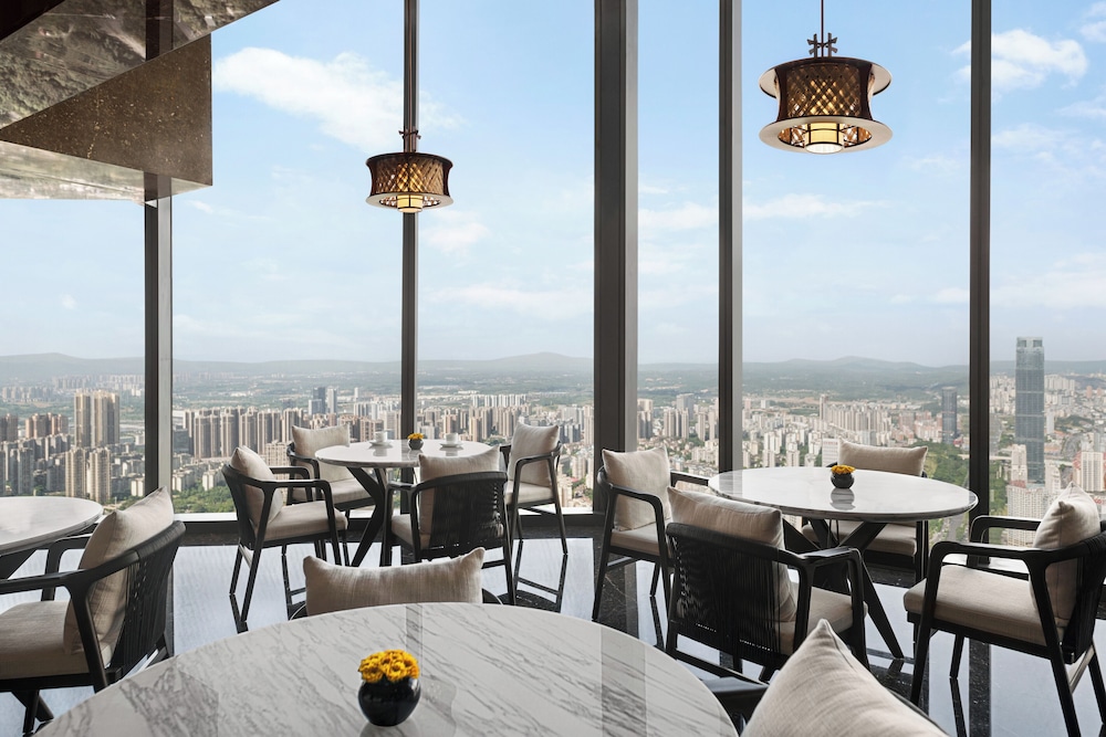 This hotel is located in the tallest building in Nanning. Our room was on the 77th floor and had amazing views with the floor to ceiling windows. Centrally located, it is easy to find and launch to other attractions. There is a mall attached at the base for shopping and dining. The breakfast buffet is on the 5th floor and had lots of selection. The front desk spoke a little English, enough to get by. The lobby is absolutely gorgeous.