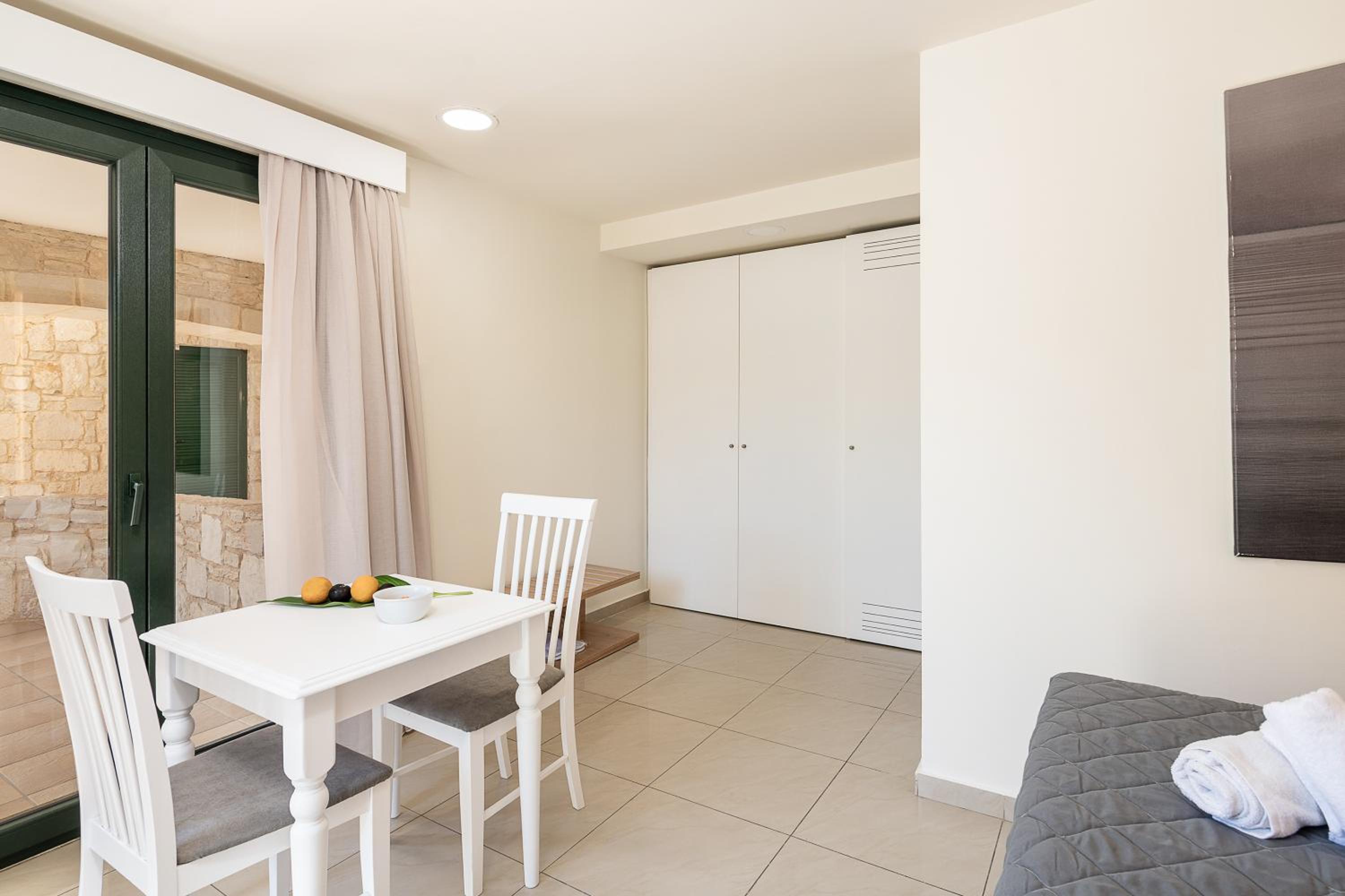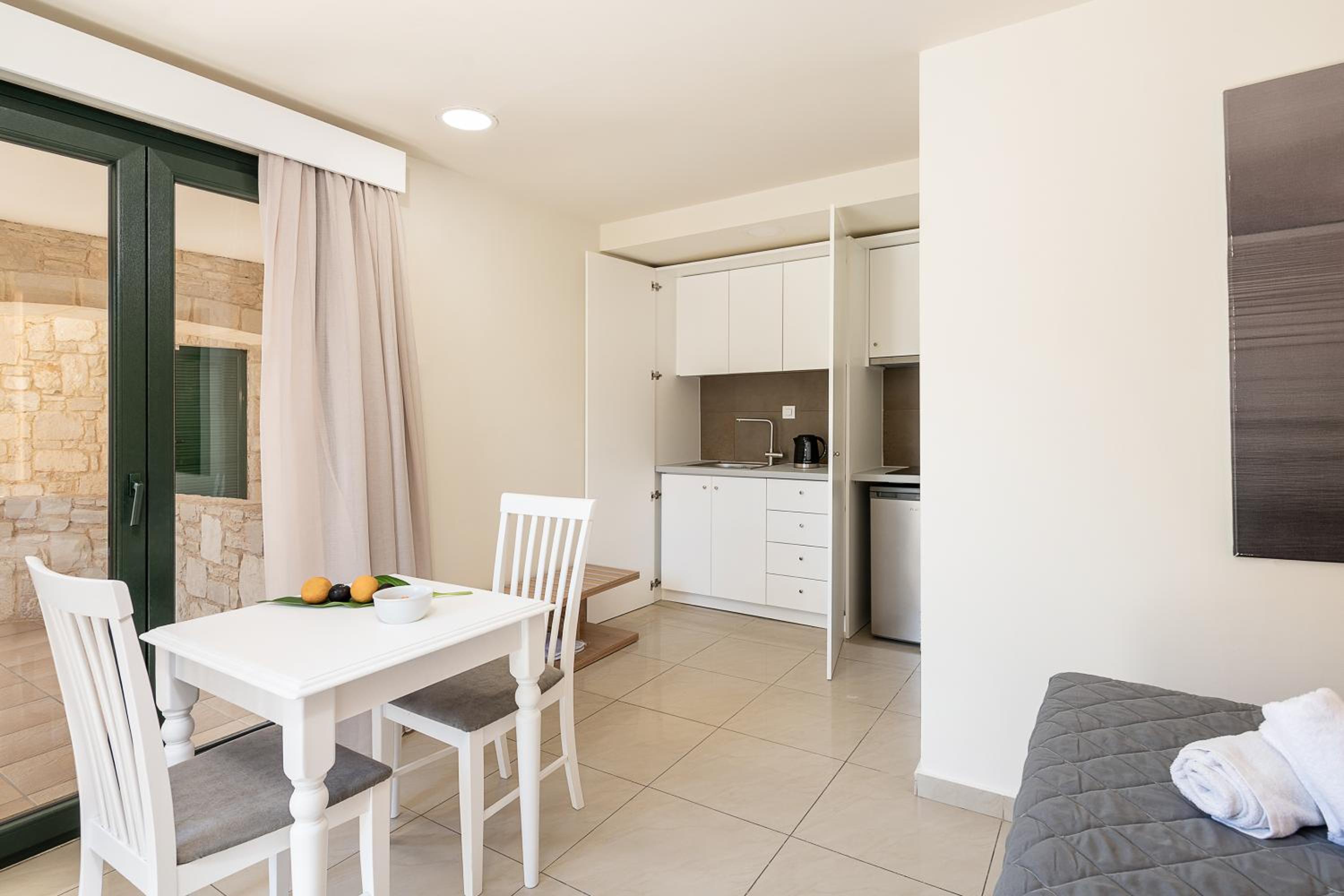 posizione tranquilla, comoda per una tappa per visitare l'Isola di Creta. Villaggio interamente dedicato al turismo anglosassone e nord europeo. Hotel pulito, con camere ampie e molto bene arredate, con tutto quanto necessario per trascorrere sia pochi giorni sia ua vacanza più lunga avendo una cucina attrezzaata e buoni spazi abitabili. La spiaggia non è lontana ed è accessibile. C'è una jacuzzi sul terrazzo della sala colazione.