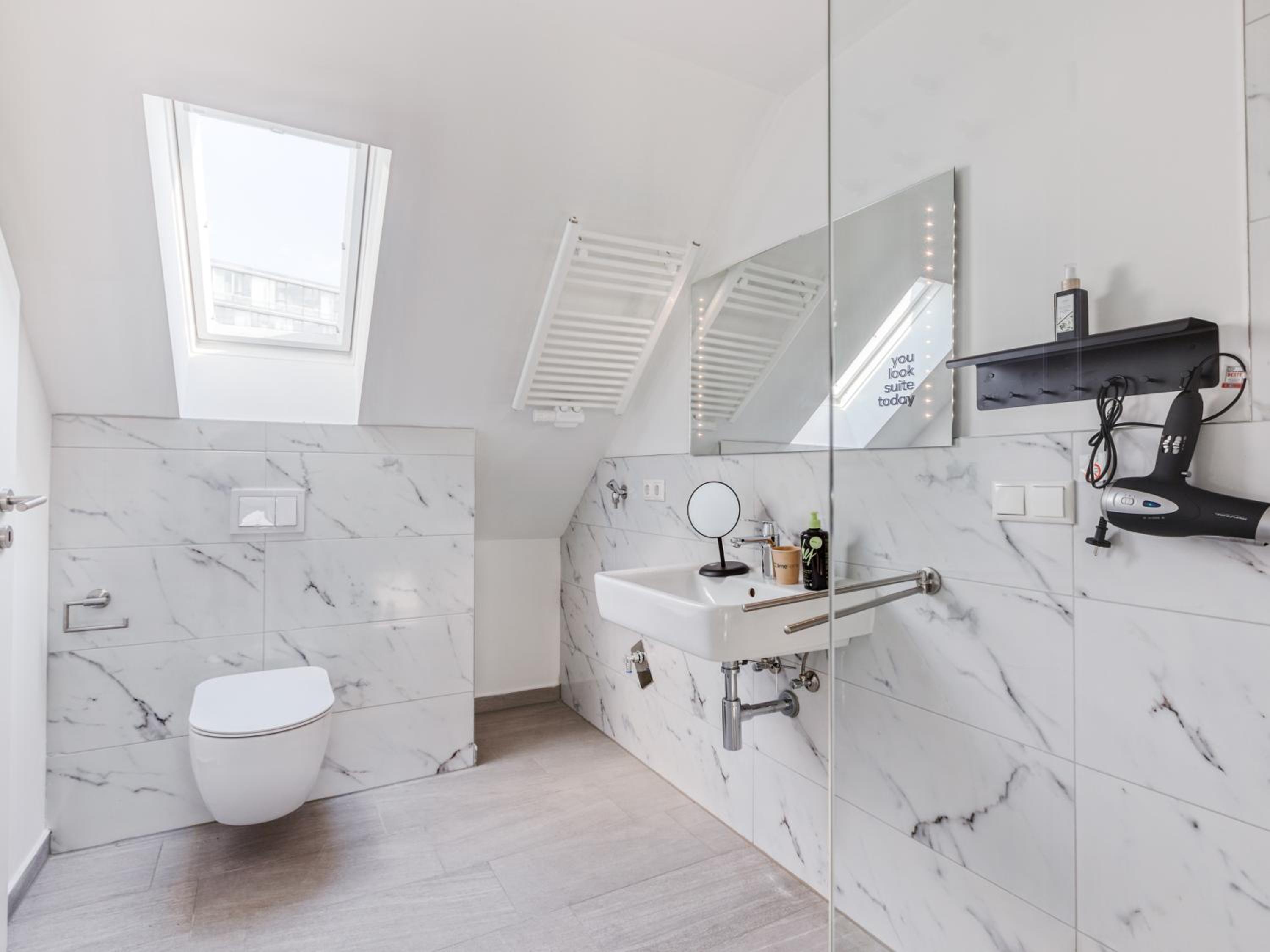 Top Lage! Nur ein paar Minuten von der Innenstadt und diversen Geschäften entfernt. Das Penthouse ist sehr geräumig und bietet viel Platz. Auch eine Küchenzeile mit Töpfen, Pfannen, Teller, Tassen usw ist vorhanden.