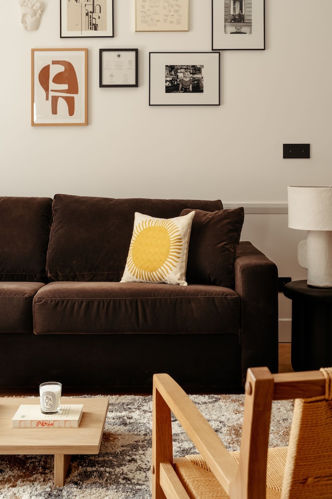 Sofa bed was used for a 14 and 9 yr old. Comfortable. Stylish condo. Easy to store our luggage after checkout. Very responsive team. Quiet street for a good nights sleep. Actual views of the Eiffel Tower and only a 15 min walk (with the kids)! Metro is close by. USB ports in bedroom which would help North American travellers. Would definitely recommend!