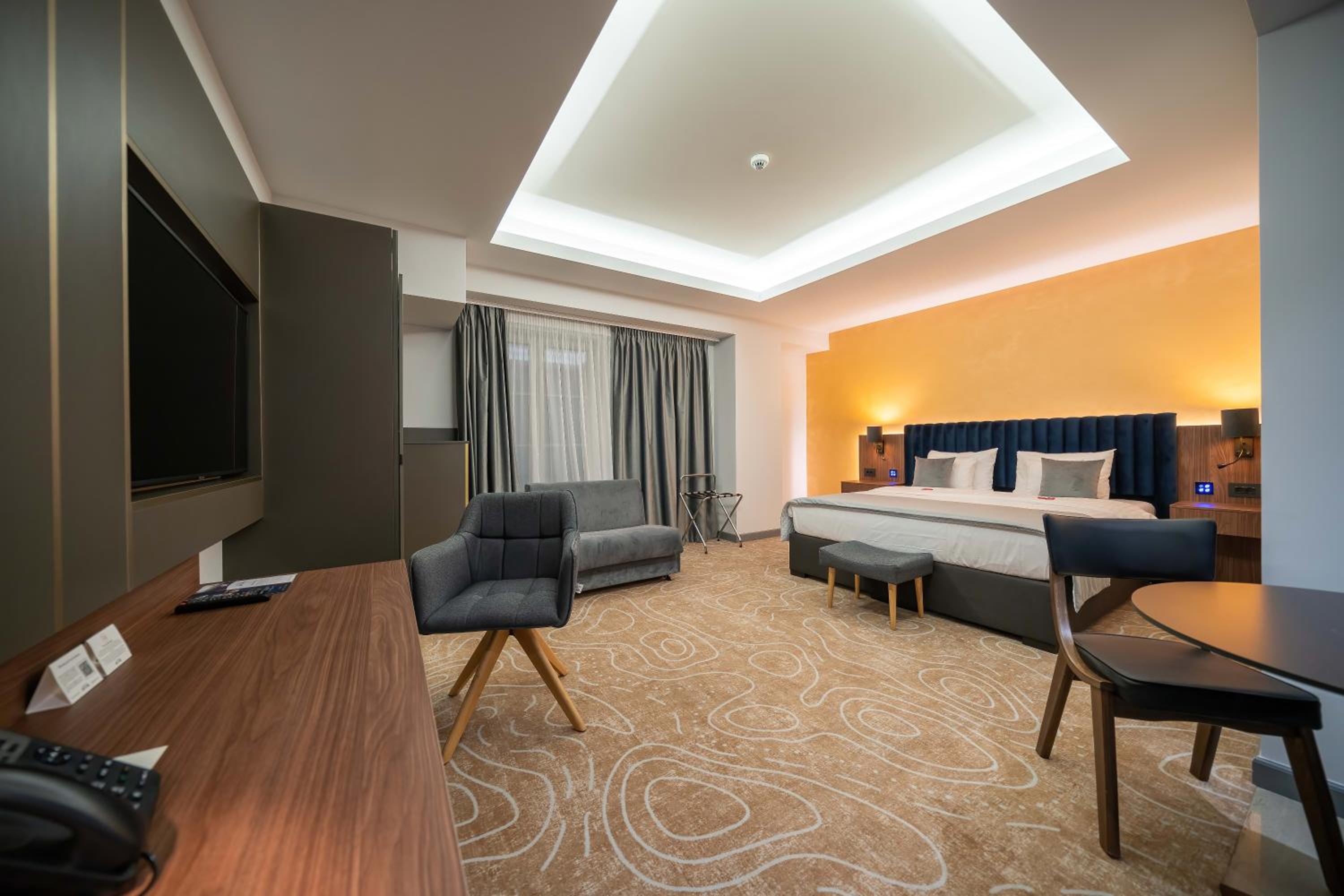ATLAS Hotel in Timişoara offers guests a 4-star experience with air-conditioned rooms equipped with modern amenities like a flat-screen TV, minibar, and private bathroom. Some rooms even feature a convenient kitchen for added comfort.