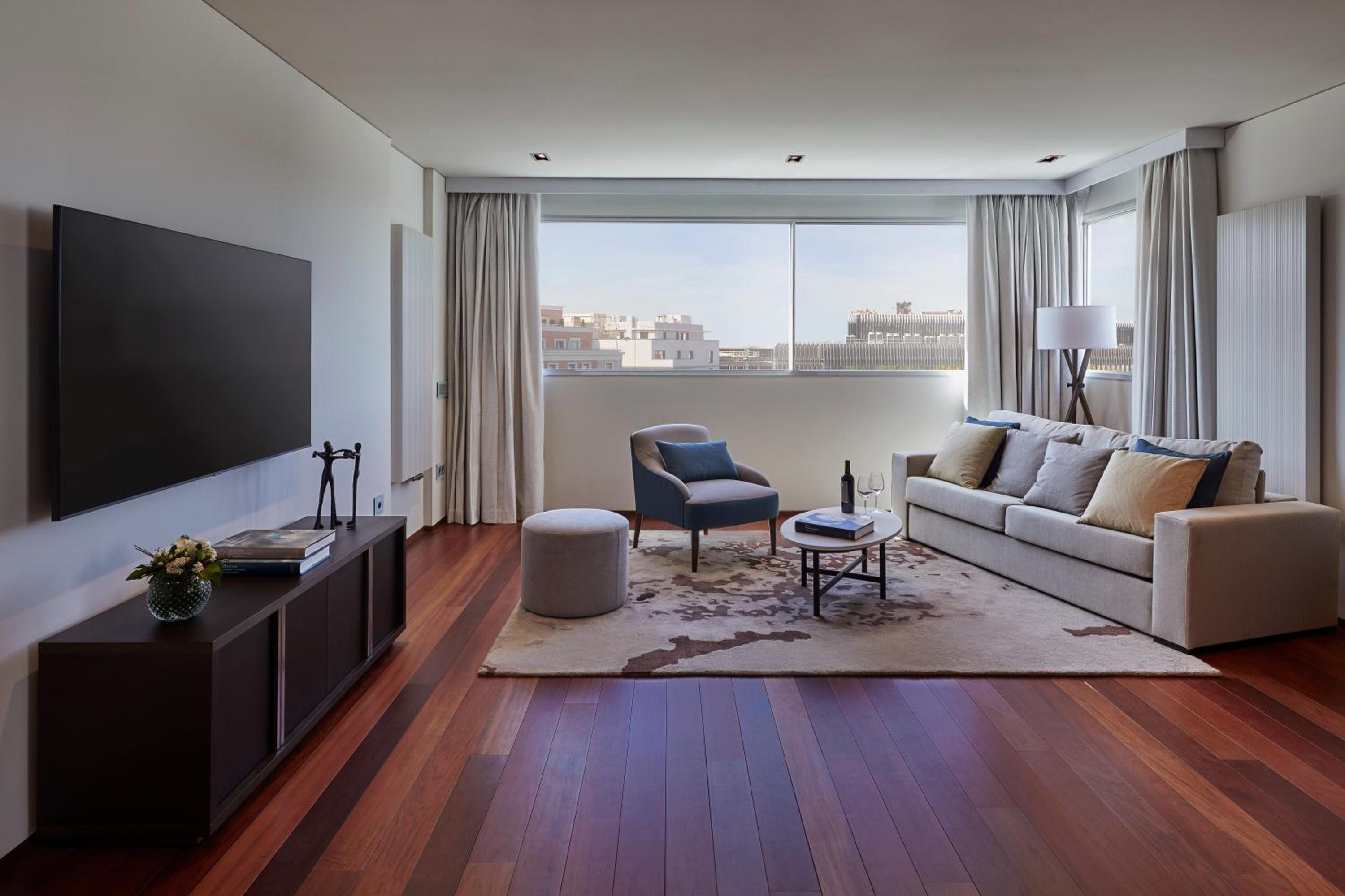 Experience luxury at its finest at Hyatt Regency Madrid Residences. Our 5-star hotel offers elegantly designed rooms equipped with a kitchen, including modern amenities like a fridge, dishwasher, and oven. Enjoy the convenience and comfort of a home away from home during your stay with us.