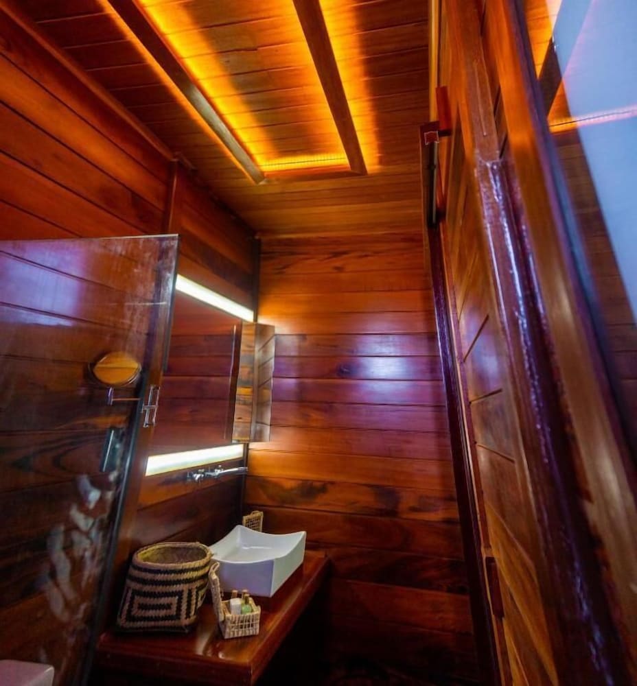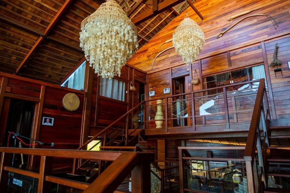 Estruturalmente bem feito todo de madeira, tinha tudo para ser uma estadia excelente, comida ruim, super sujo, cheiro muito forte de xixi, muito barulho na madrugada as 3h da manhã ninguém mais dormiu por alguém perdeu a chave de passou um tempão pateando na porta com um pau para romper a fechadura, toalha fedendo o preço cobrado não vale o que oferecem, não tem estacionamento, enfim. Estadia foi tão ruim que chegamos as 16h e saímos às 6h não aguardamos nem o café com medo do que poderia ser. várias observações. Se tiver uma administração o hotel tem tudo para ser um experiência perfeita. Gente não tinha nem um frigobar no quarto fui comprar uma água 9 reais no bar do hotel porque no quarto não tinha