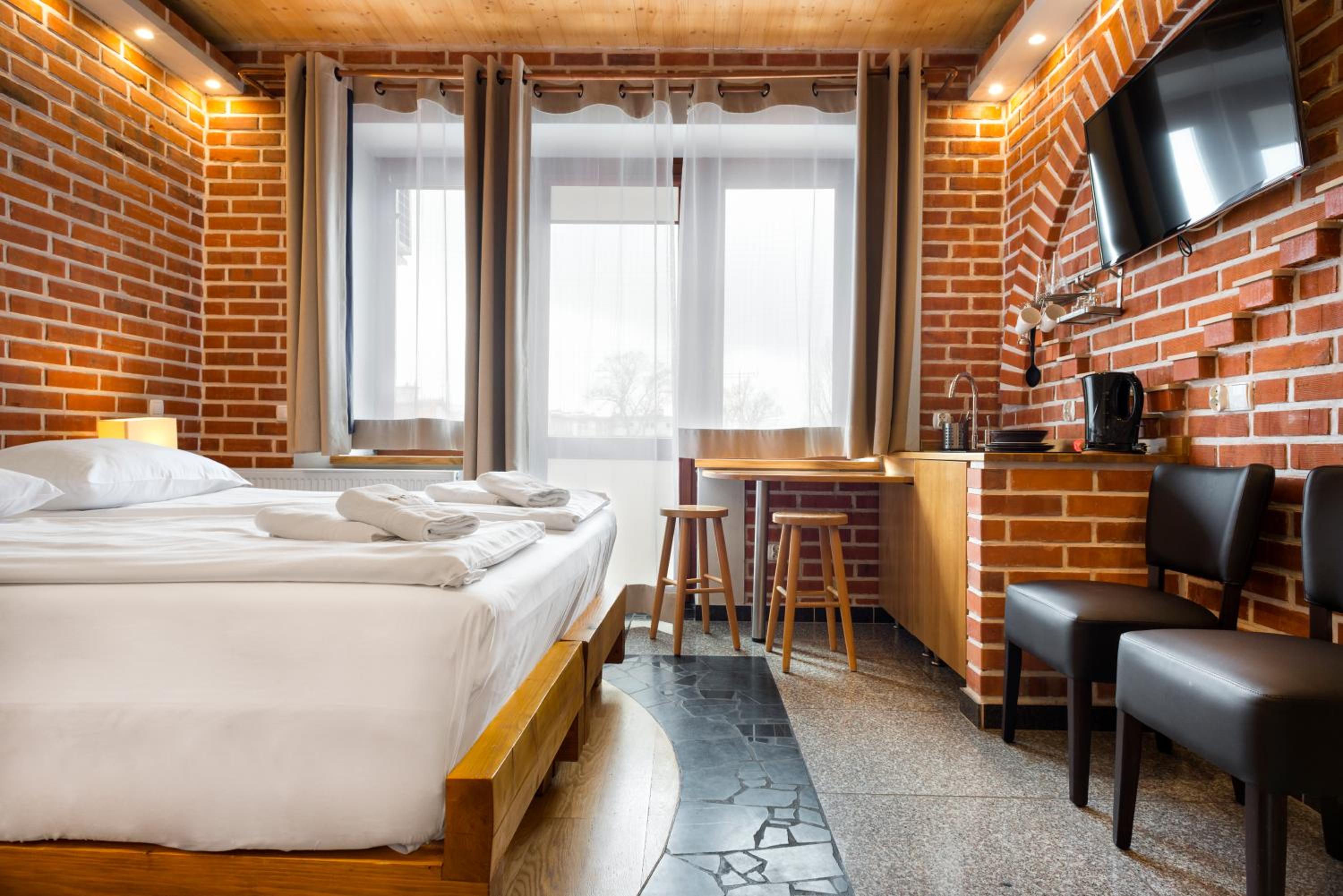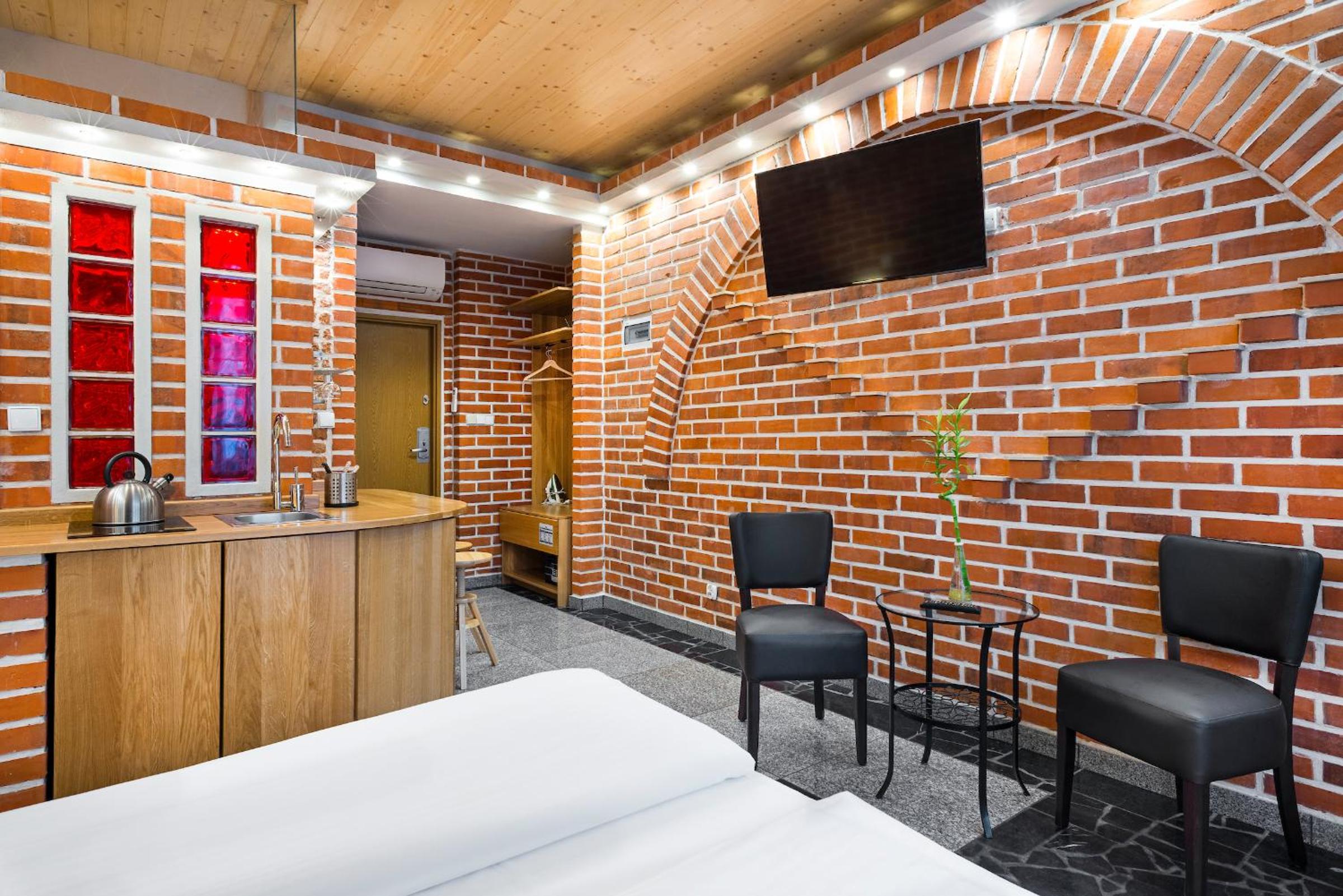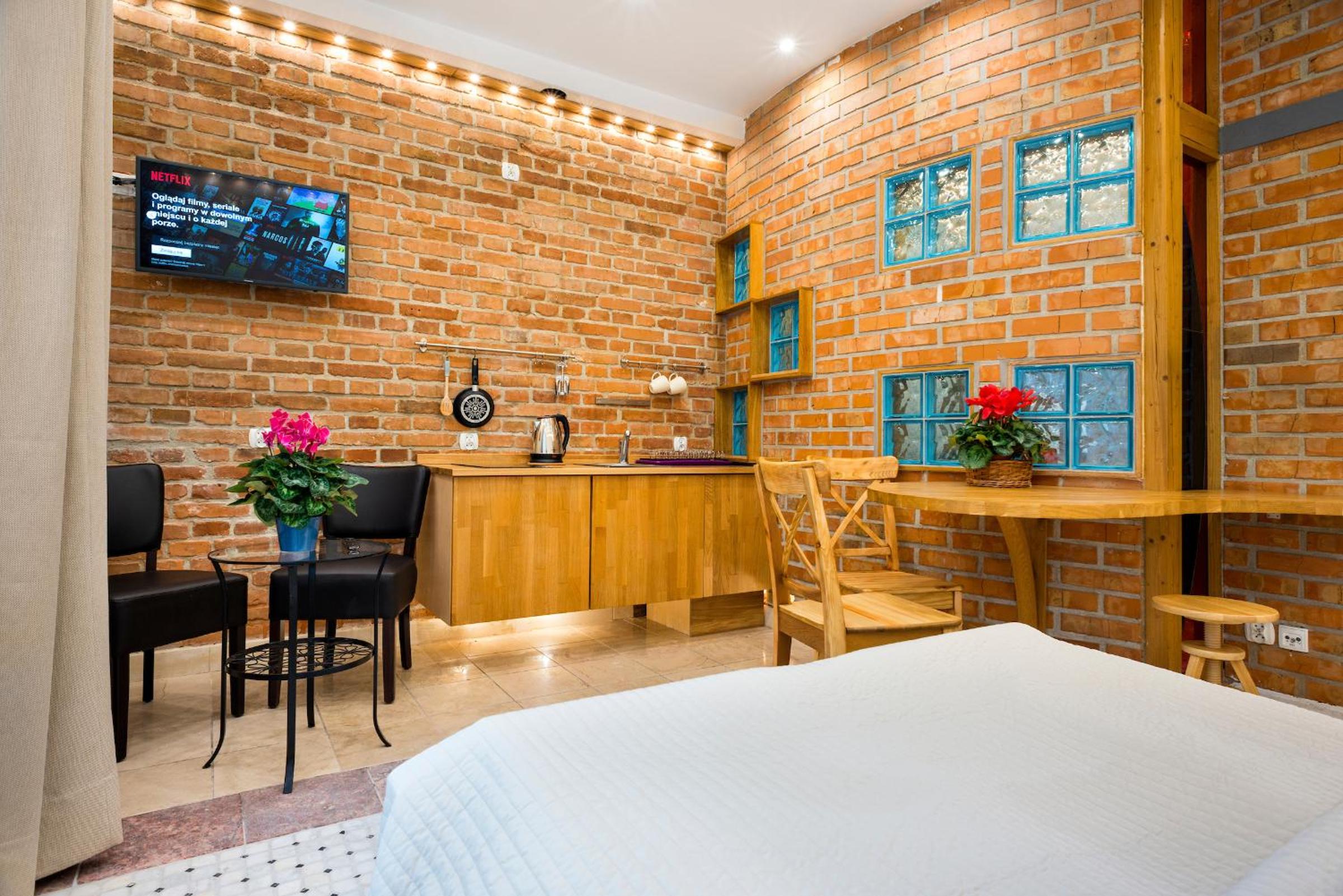 Experience the charm of Kraków at our red brick studios, just a short walk from the Main Station and Old Town. Enjoy the convenience of free Wi-Fi and a well-equipped kitchenette in each room.