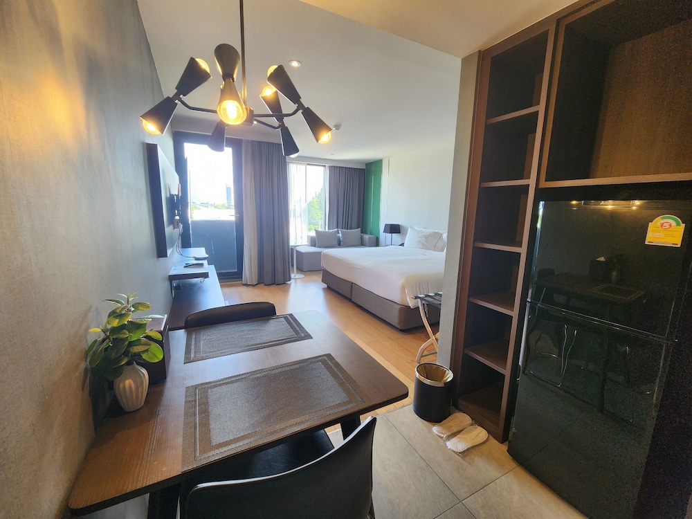 Nice & clean hotel. The room has nice ambience and it has a lot of aminities (microwave, big fridge, washing machine). Their staff are really friendly. Location is close to the airport and jodd fairs.
