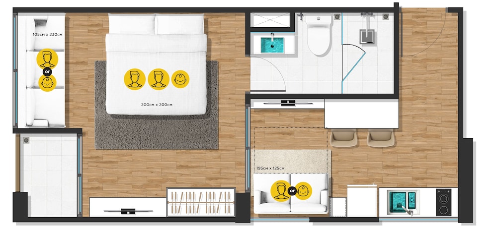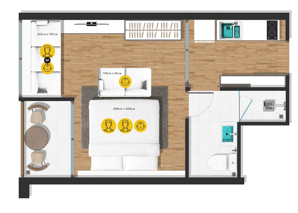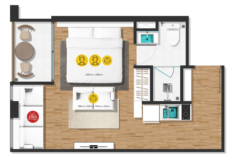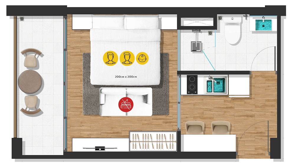 Our 50 air-conditioned rooms come equipped with full kitchens and private furnished balconies, ensuring you feel right at home. With 40-inch Smart TVs and complimentary Wi-Fi, you can stay entertained and connected throughout your stay.