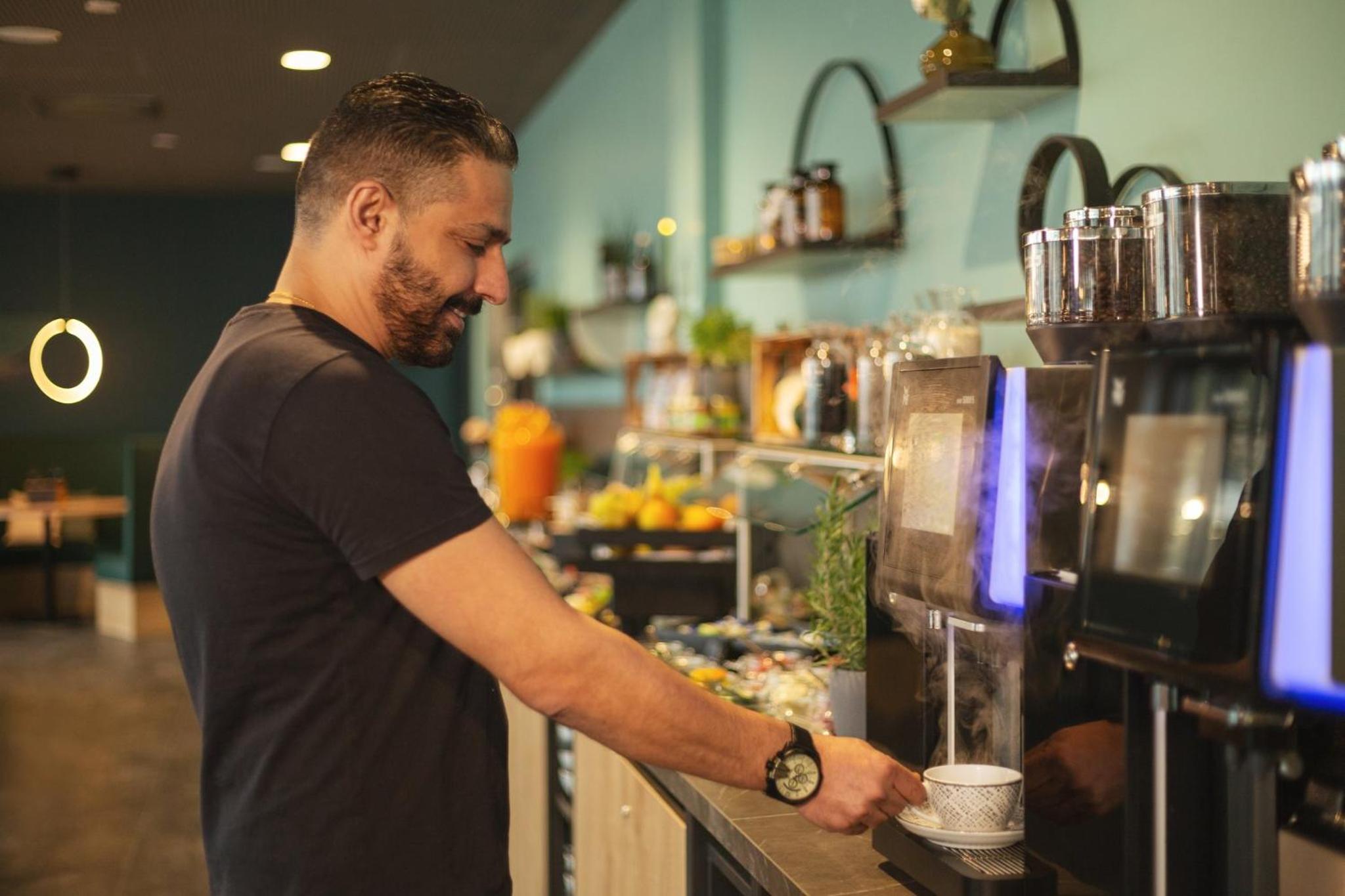 Personal im Restaurant war für mich schwer als solches erkennbar. Koffeinhaltige Kapseln vorhanden, eine Flasche Mineralwasser wäre noch schön.