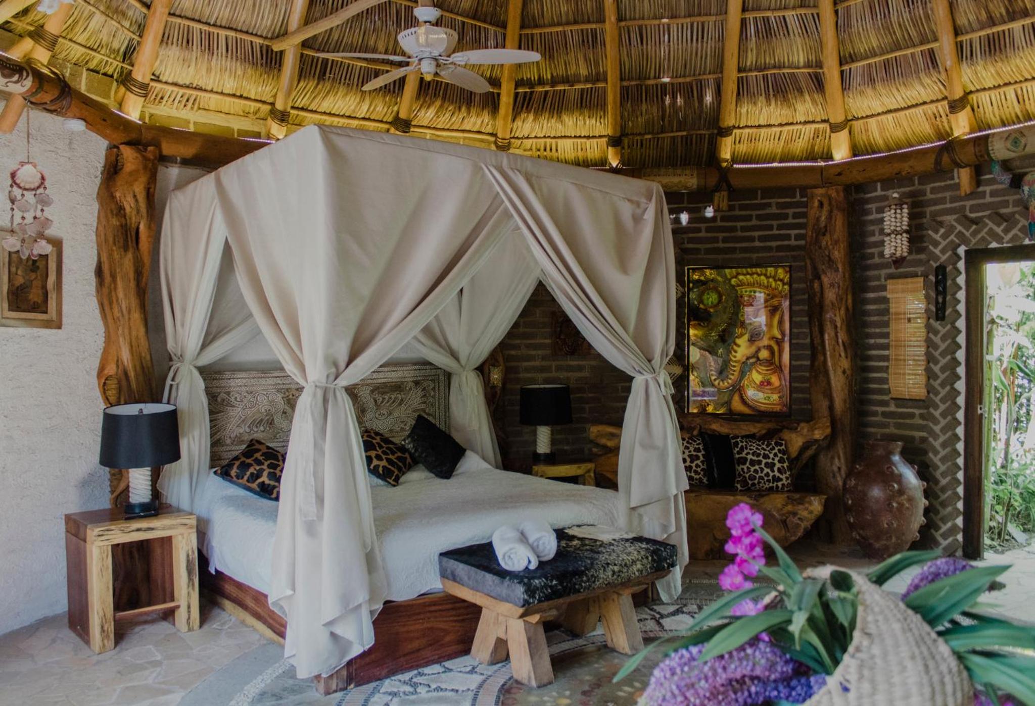 dusty and deserted location no amenities in the room..advertised as an hotel it was merely a gated garden with 5 private cabanas...good for one romantic nite..as the cabanas are open air you might be entertained by noisy neighbours