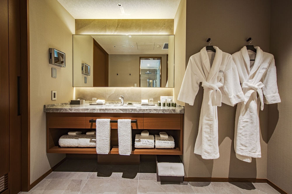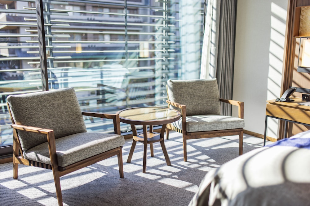 This is a decent hotel overall - clean well furnished bedrooms with all the facilities that you might require - if seriously expensive. Downside really amounts to F&B. This offering is woefully below what one would expect. To eat dinner in the hotel restaurant requires three days notice and a minimum of ¥ 22,000 per person (USD150). There is a lounge menu but this is hard to access - essentially the hotel offered only coffee and free wine between 3 and 6 pm (sparkling wine came from a barrel!) A glass of wine on the lounge menu if you can find it before 9pm is around ¥4,000. Breakfast is too expensive - ¥6,500 for a continental breakfast delivered in single portions - you keep having to ask for the second croissant or pain au chocolat! Compare this to ¥5,000 for a great room service delivered breakfast at the Mandarin Oriental in Tokyo and you can see the level of overprice. The Okura in Tokyo also offers better value!. The hotel is around 30 mins walk from downtown so a ¥1,000 to ¥2,000 taxi each way. So perhaps if you want Okura style at a sensible price, try the Okura in town instead.