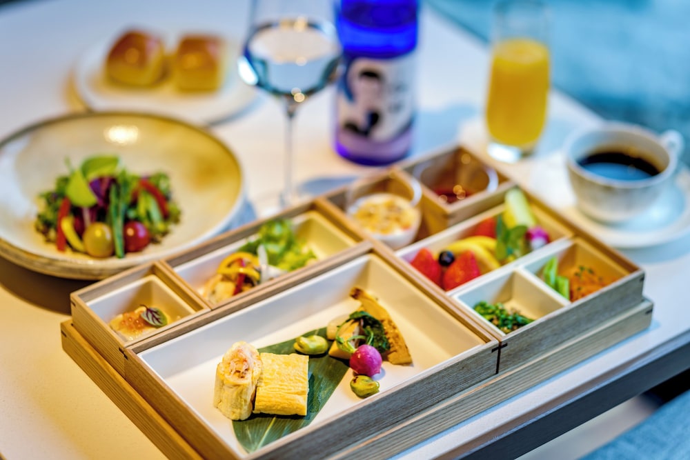 Breakfast exceeded our expectations.There was a first course of breads with a bento box. We ordered the American breakfast but it came with very Japanese touches: salad with local greens, a salmon sushi, and several others. The main course was equally wonderful.