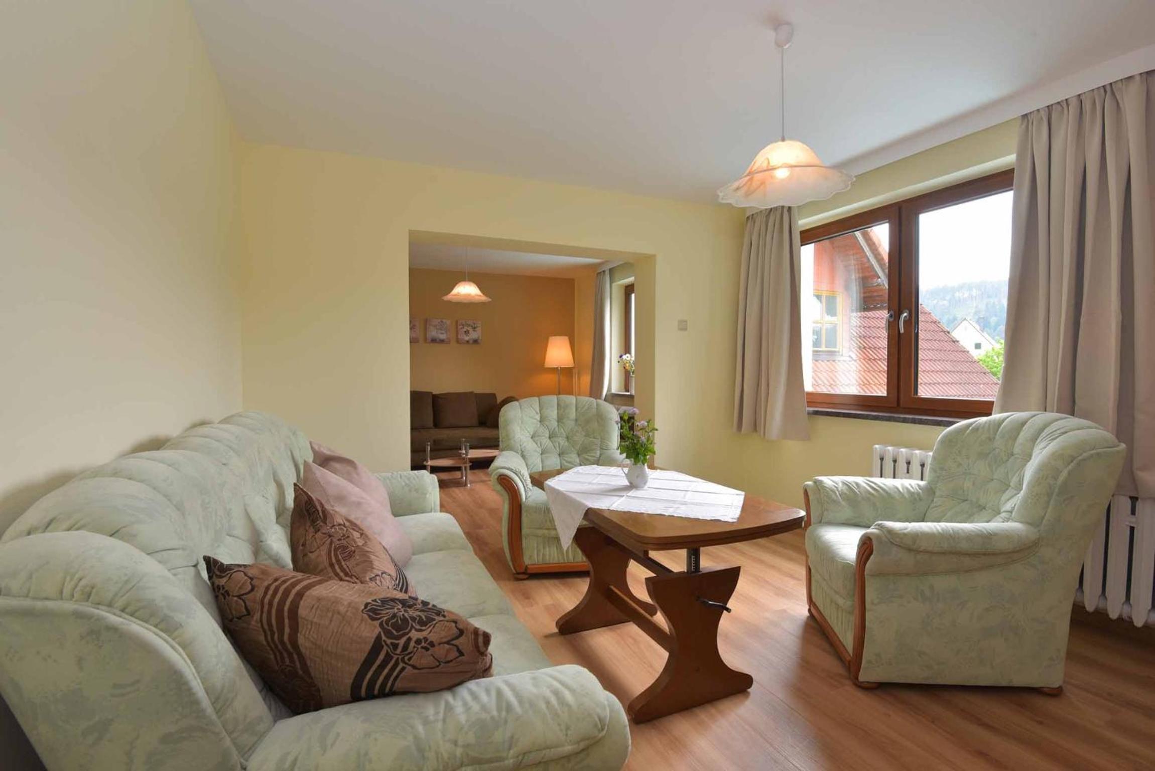 Die Nutzung des Frühstücksraumes als Aufenthaltsraum. Die Lage am Bahndammradweg. Die netten Gastgeber.