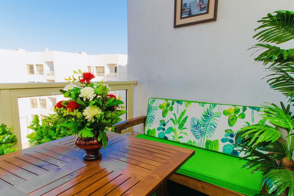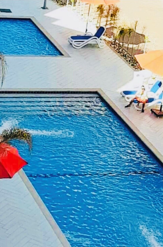 The aparthotel offers an outdoor pool and a lovely garden view, perfect for unwinding and enjoying the serene ambiance.