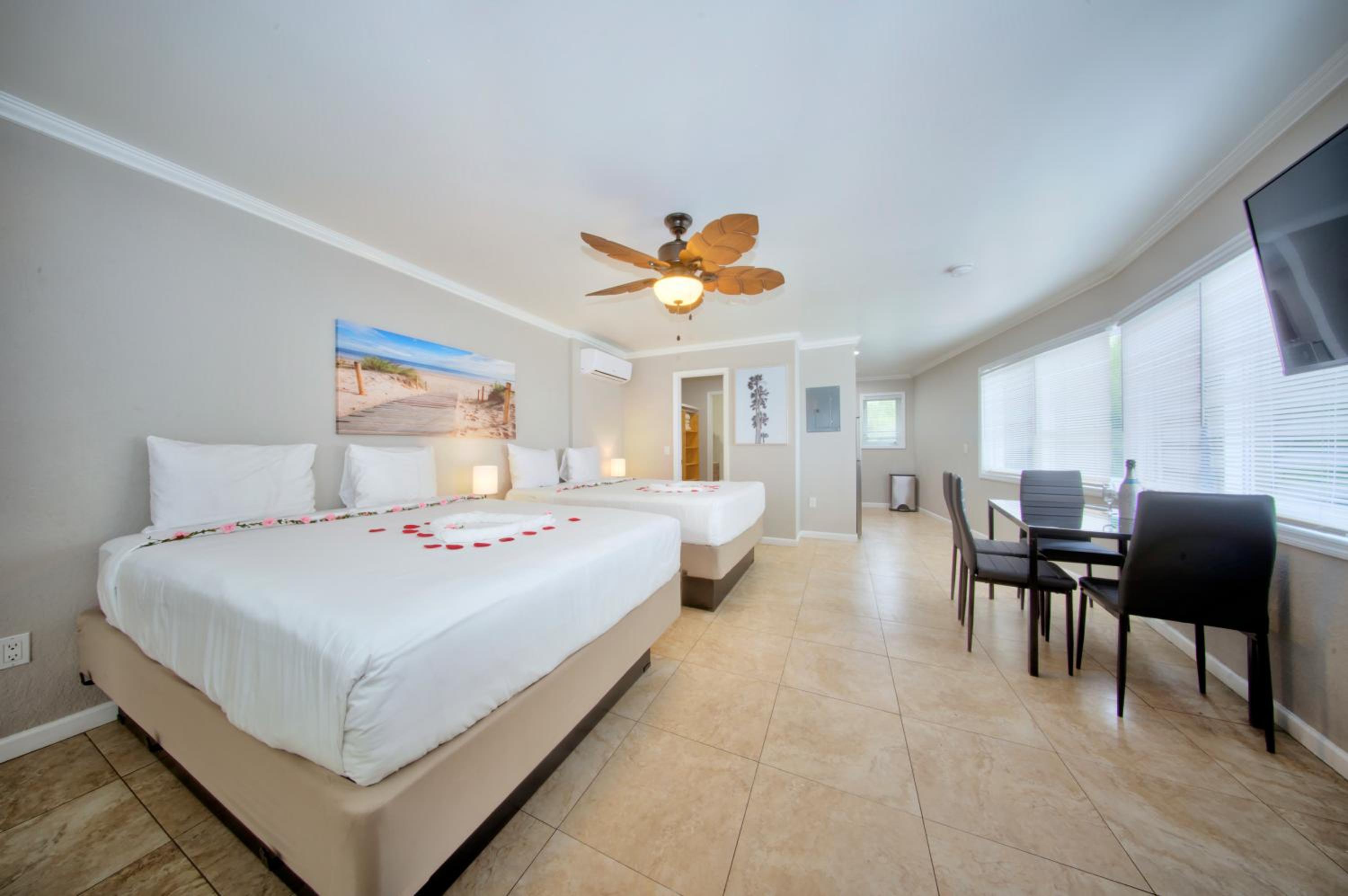 Each room is equipped with air conditioning, a kitchen, and a flat-screen TV for ultimate comfort. Enjoy free WiFi, private parking, and proximity to Pompano Pier for a seamless vacation experience.