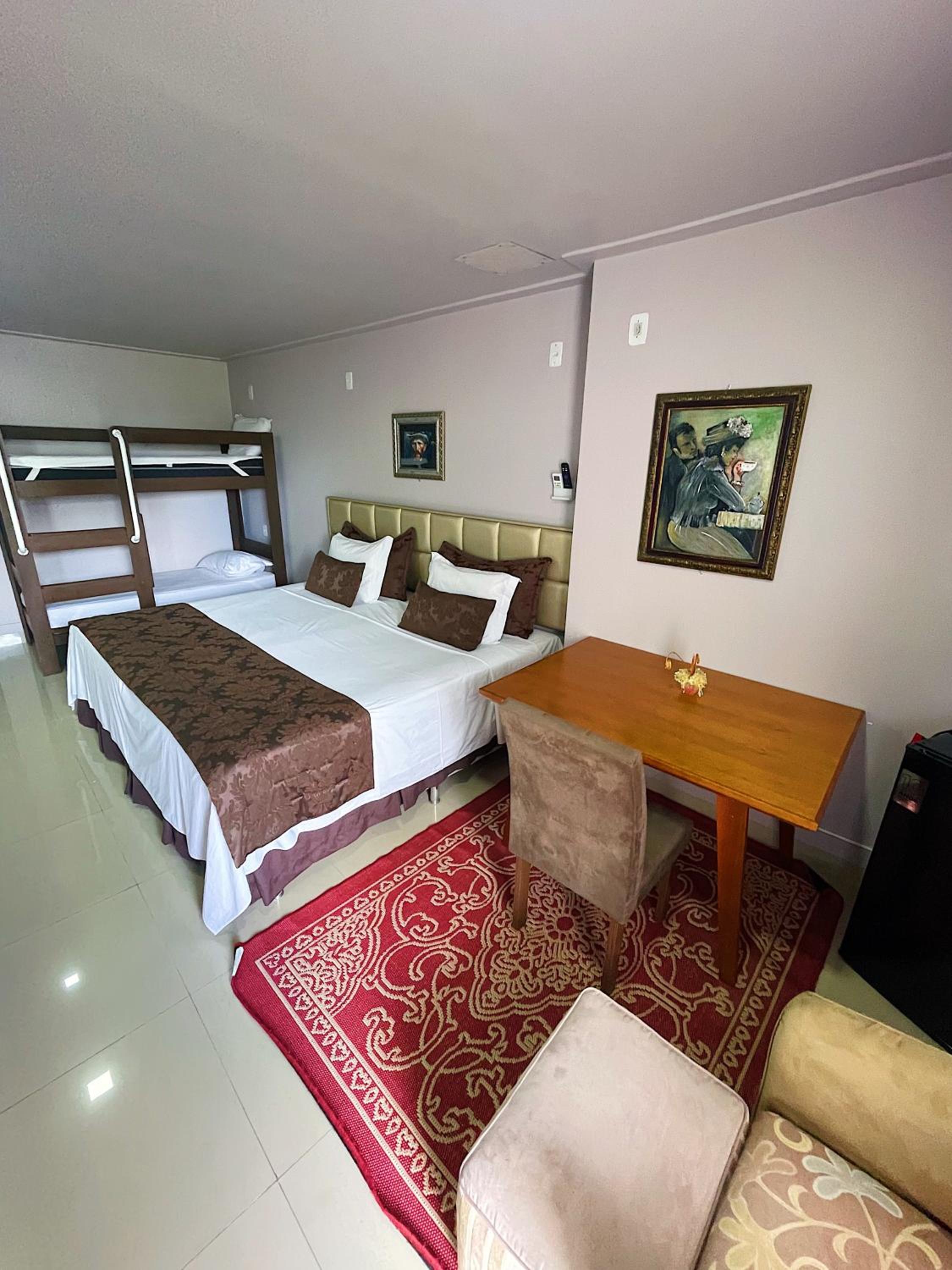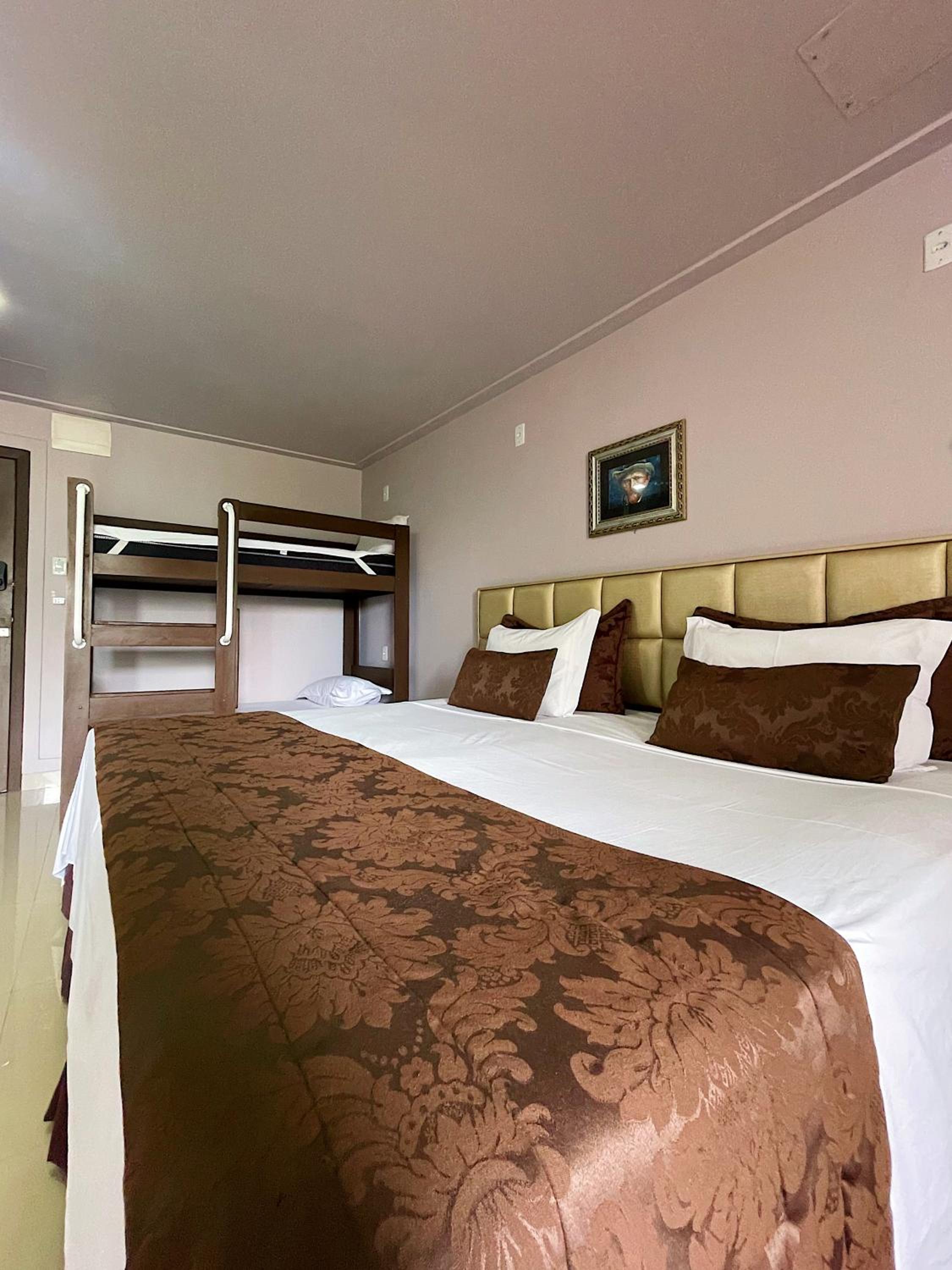 Éramos amigos viajando para um congresso e fomos colocados em quartos com cama de casal. Nosso quarto com certeza é o pior da instalação, um quarto minúsculo ,com uma cama de casal, mas que não comporta 2 pessoas ao mesmo tempo. Ficamos o tempo td apertadas e numa bagunça de malas e objetos pessoais porque não havia espaço pra nossas coisas. Ficamos 6 dias e só houve limpeza no quarto 1 vez.