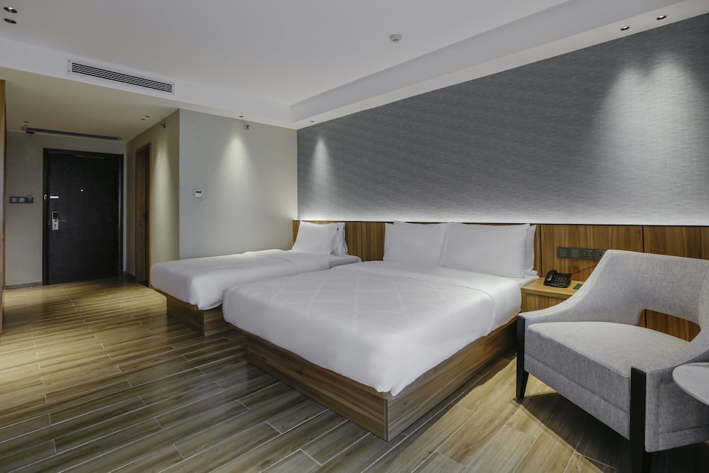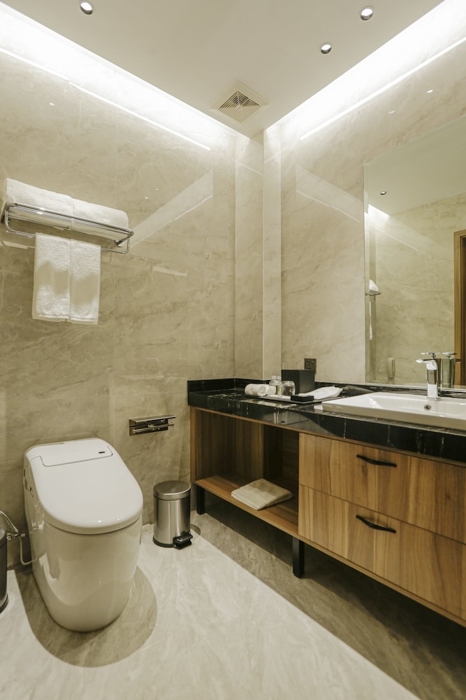 Booked a family room for 3 adults with breakfast. Happy with their promo price. I thought the room will be quite a big room but it just looked like a typical deluxe room of any other hotels. It has 1 queen bed and 1 single bed with small balcony enough for 3 adults. I find the comfort room too small for a family room. When you open the CR door it will be the sink already and beside is the toilet bowl. Too cramped and the shower room is so small as well and the floor tiles is a bit slippery. No rubber mats at least to keep guests safe. The water bidet has a very strong water pressure which is so unsafe to use.