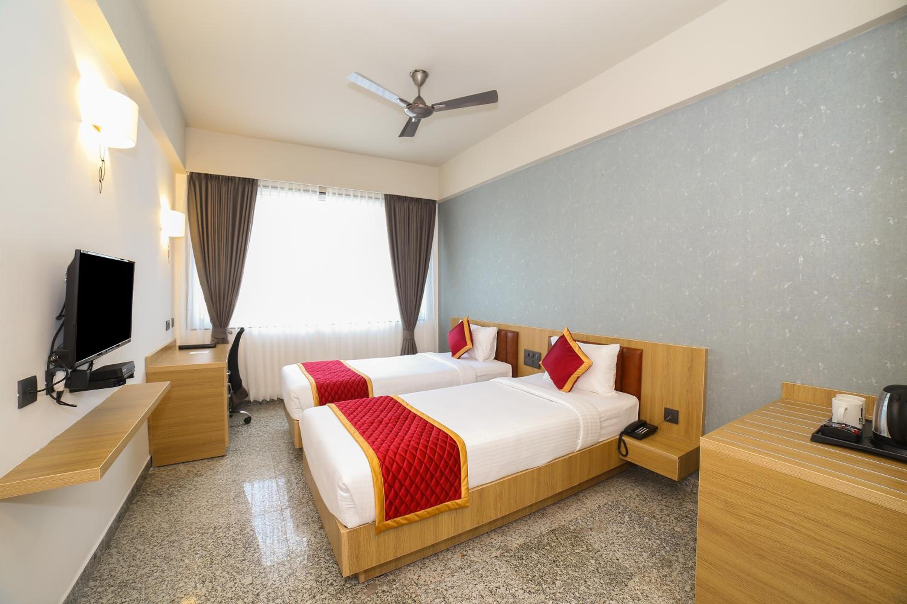 The air-conditioned rooms at ICON Express by BHAGINI Hoodi are well-equipped with a wardrobe, coffee machine, safety deposit box, and a flat-screen TV. Each room also includes a private bathroom with a refreshing shower and a cozy seating area for relaxation.