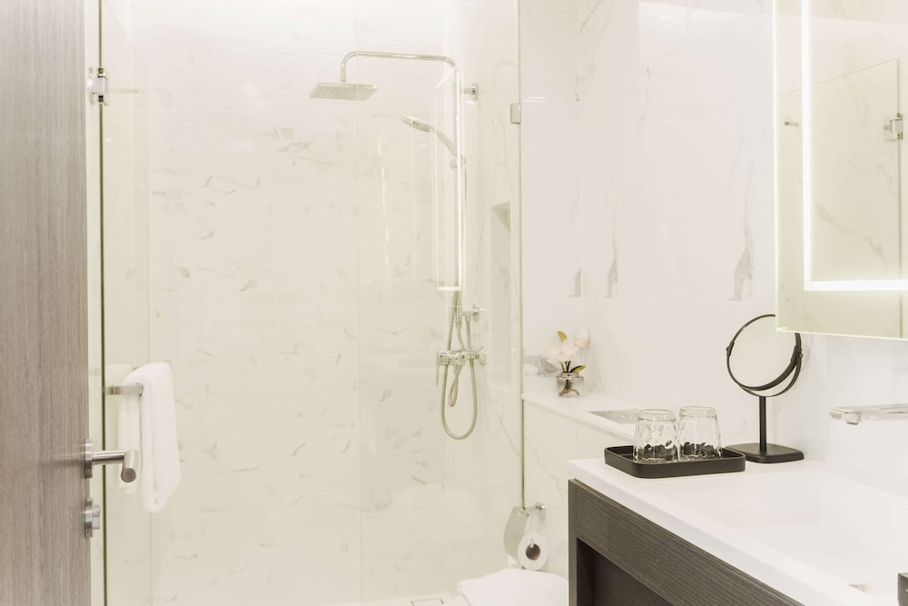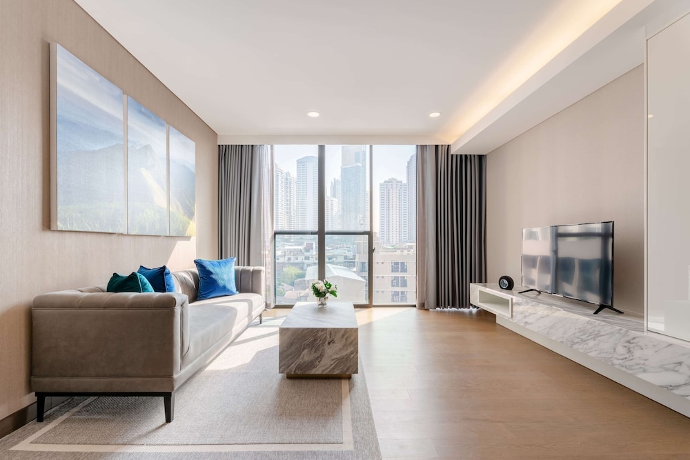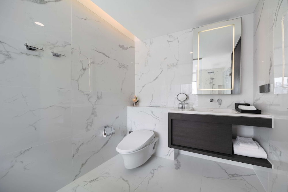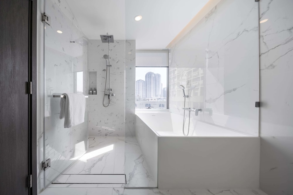 Transportation via Grab was easy from this location, largely thanks to the helpful front door staff. The internet was fast once connected, though it occasionally required re-logging in. The location isn't highly walkable, but it's very close to a nearby train station. The rooftop pool's jets were a bit confusing and didn't feel hot.