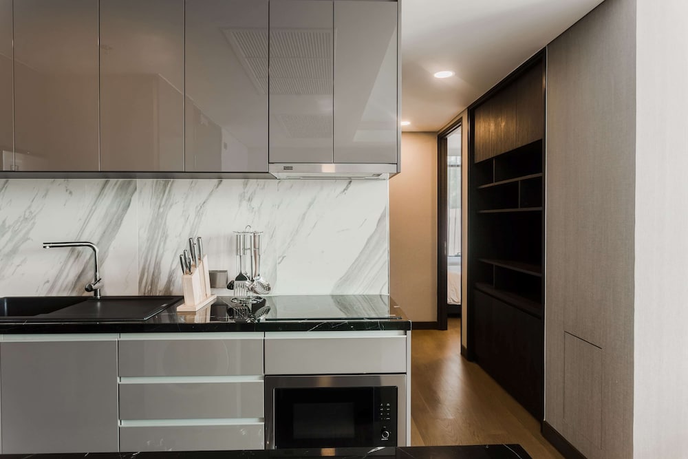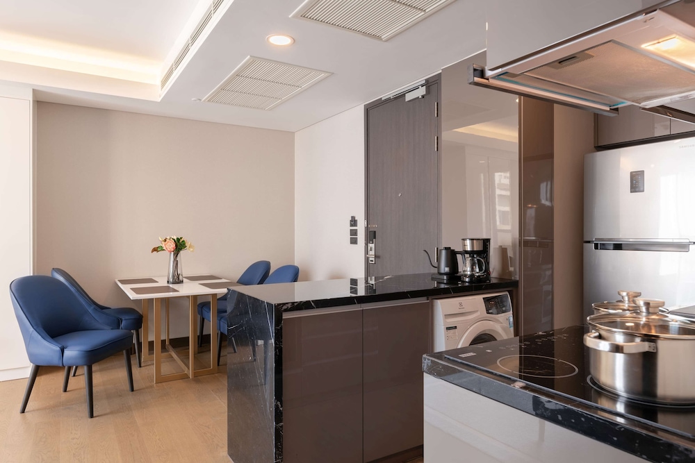 The room was beautiful, featuring separate doors between the kitchen, living room, and an indoor balcony, giving it a spacious, apartment-like feel. The in-room laundry was functional, although the drying cycle was quite slow, requiring multiple runs.