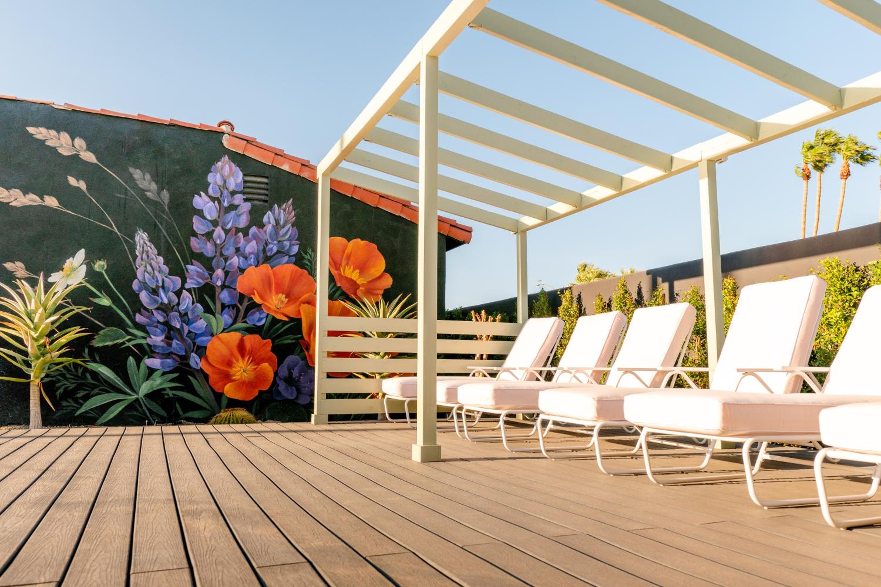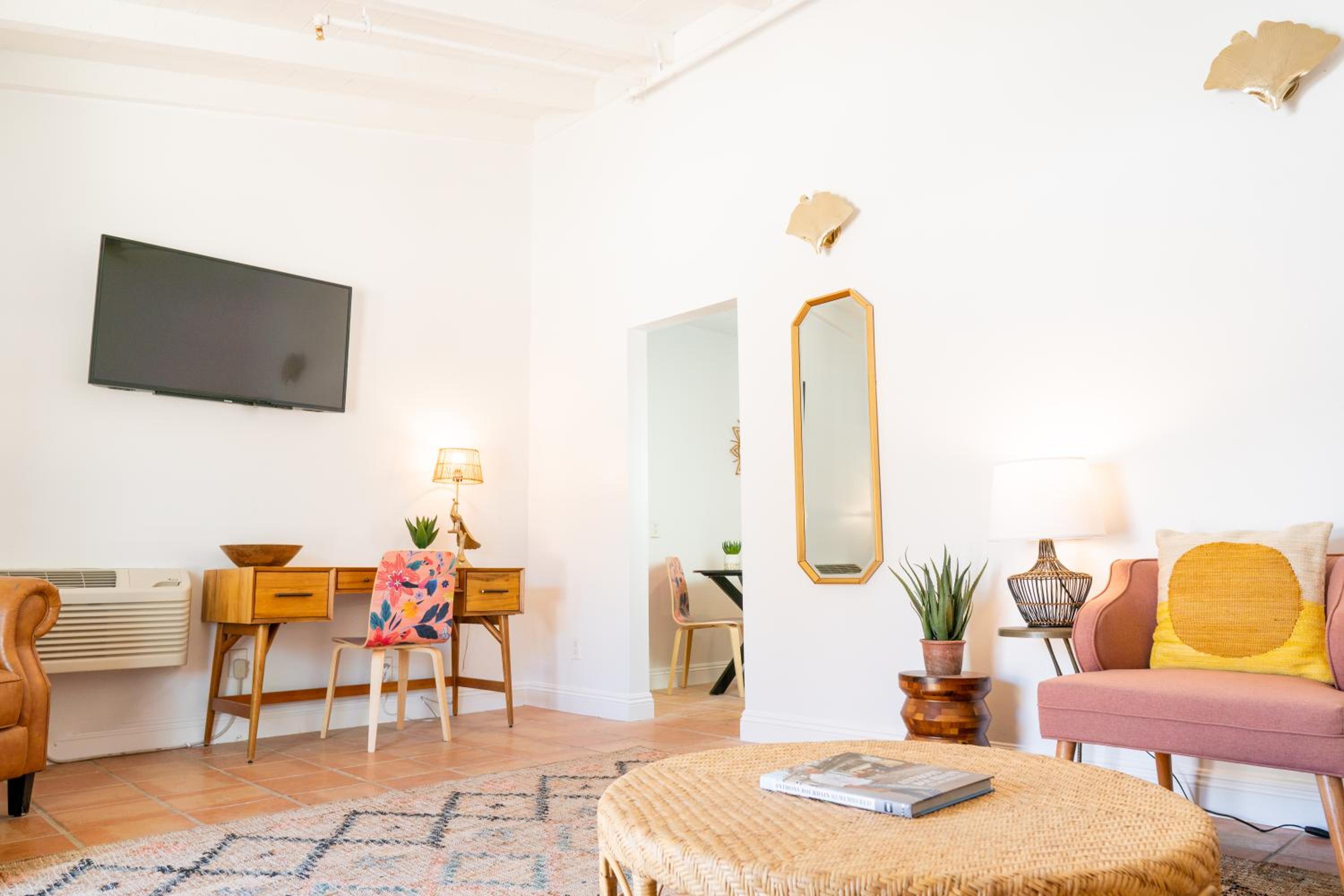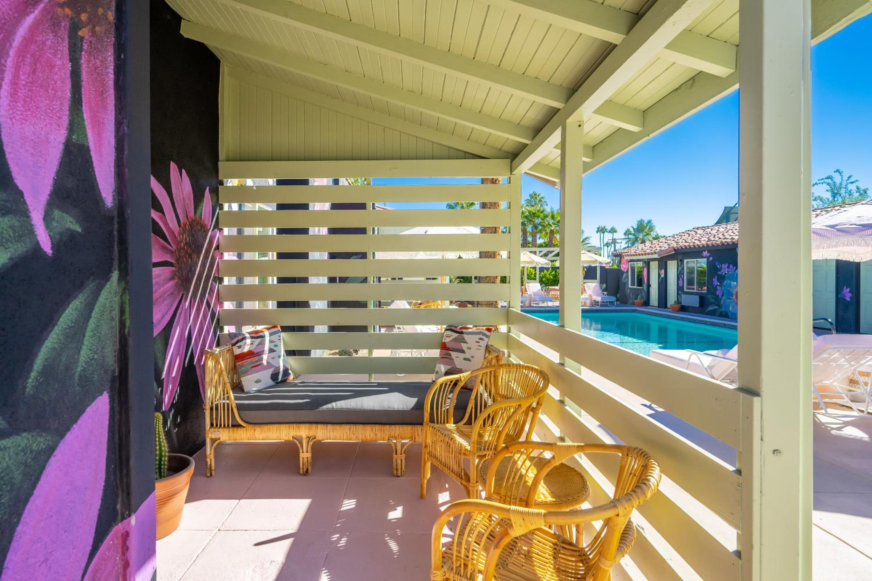 Unwind by the outdoor swimming pool or take a leisurely stroll in the garden at our hotel. Enjoy the sunny Palm Springs weather while lounging on the terrace, creating unforgettable memories during your stay.