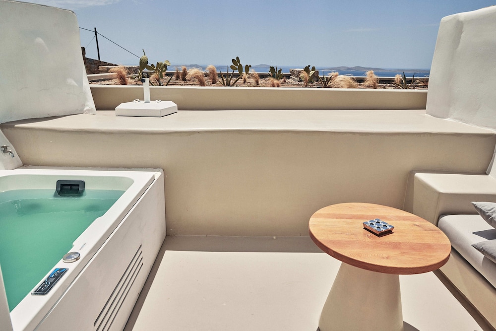 OMG! What a view! I can't explain it in pictures or words. We loved this place so much. Two women in their early 60's on a Greece island vacation. Loved the staff especially the lovely, beautiful Anthe! The breakfasts were amazing. The sweet little bird who sat on the top of the building across from our room serenading us all day was too cute. The hot tubs were delightful. I would stay again! Great walking up to the light house as well. wonderful picturesque pictures from this hotel.