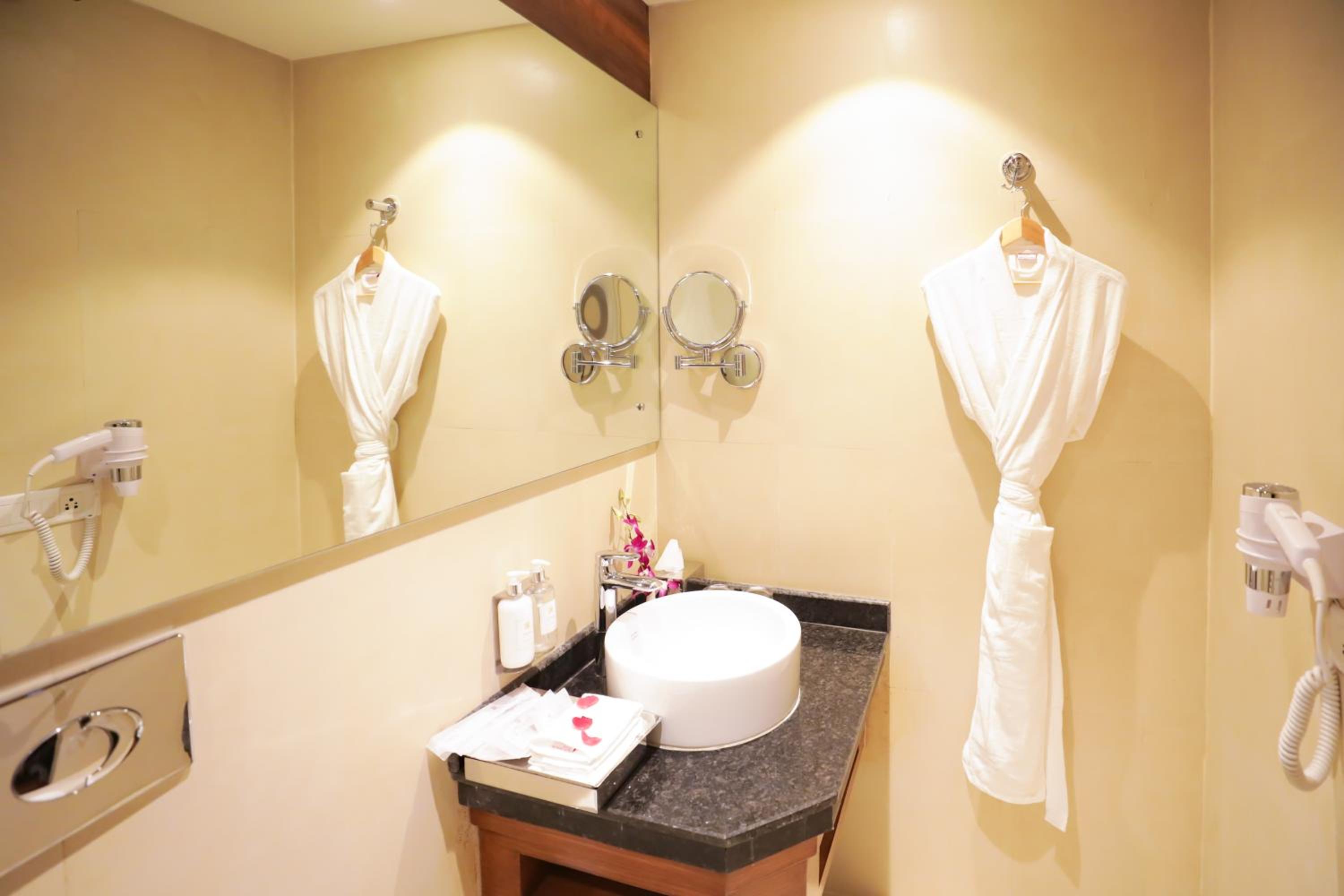 Indulge in 4-star luxury with air-conditioned rooms, city views, and modern amenities including flat-screen TVs and kitchenette options.