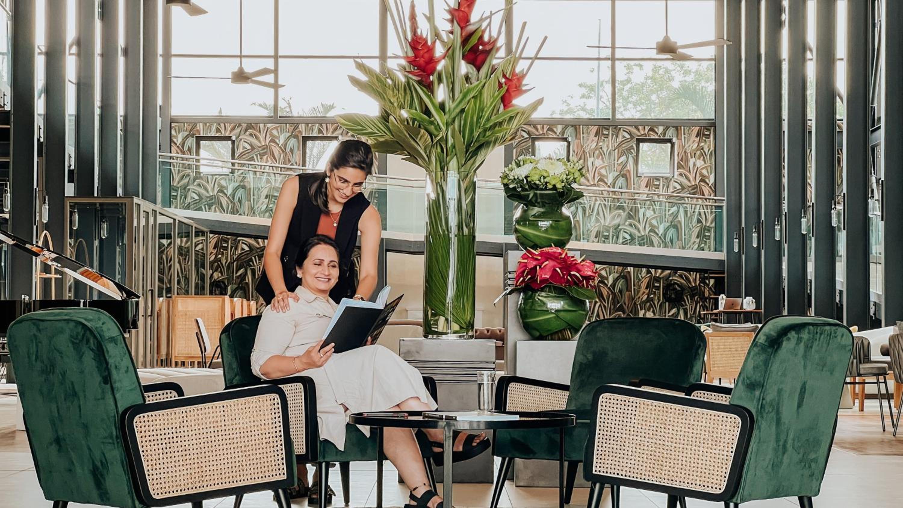 Garden Views and Modern Amenities: Enjoy the serene garden views and modern amenities including an indoor pool, hammam, and 24-hour front desk. Each unit offers a kitchen, flat-screen TV, and a private balcony with mountain views.