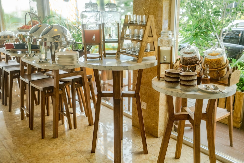 Stayed only few hours waiting for midnight international flight so did not go exploring the surrounding area. 20min drive to airport depending on traffic. Staff polite and in a good mood. Room basic but very clean. Large soft bed. Had some sandwiches at the rooftop terrace. Nice place with lots of plants.
