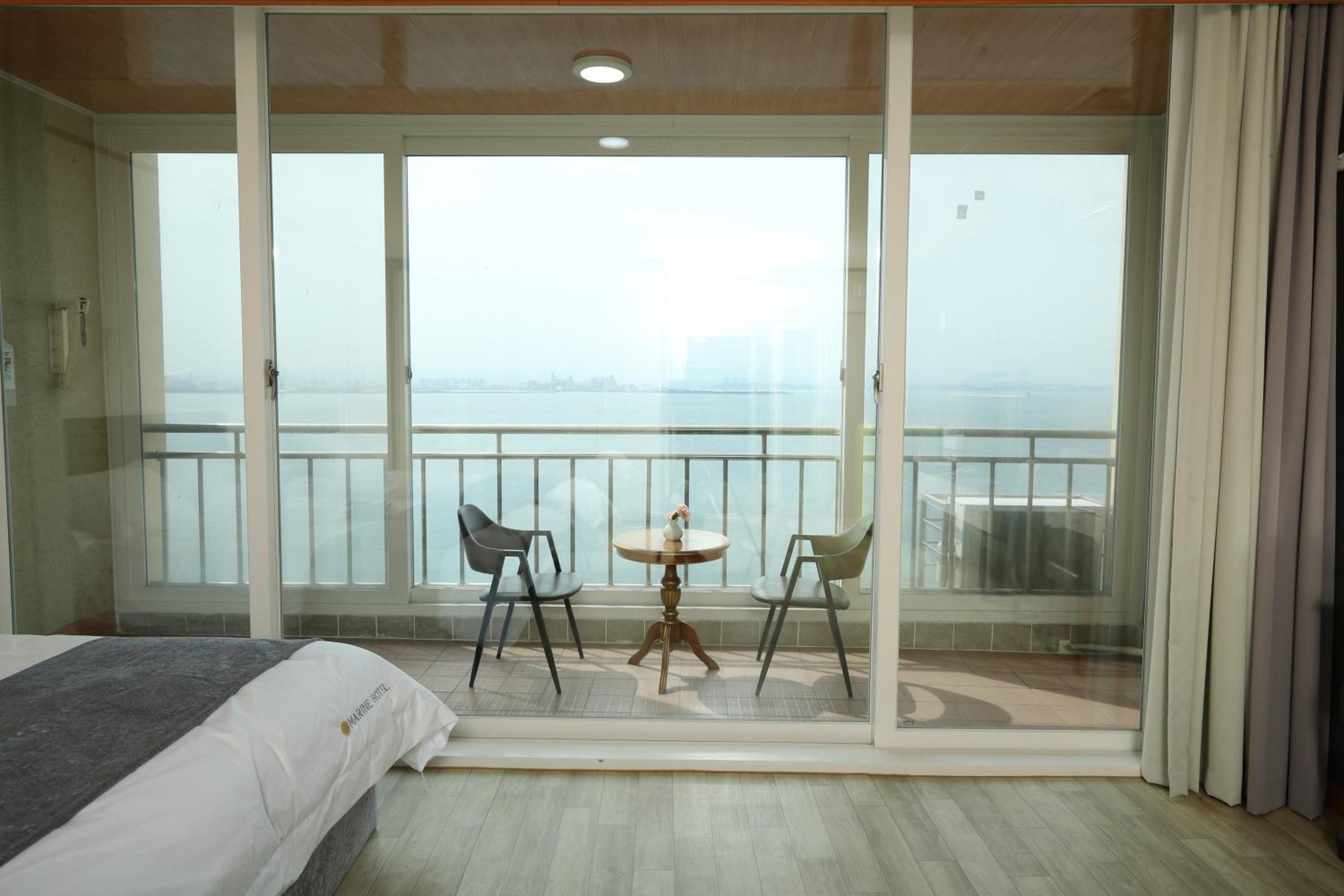 Hotel Marine in Pohang offers a luxurious stay with rooms featuring stunning sea views and private terraces. Each room is elegantly designed with a wardrobe, air conditioning, and a flat-screen TV for your comfort.