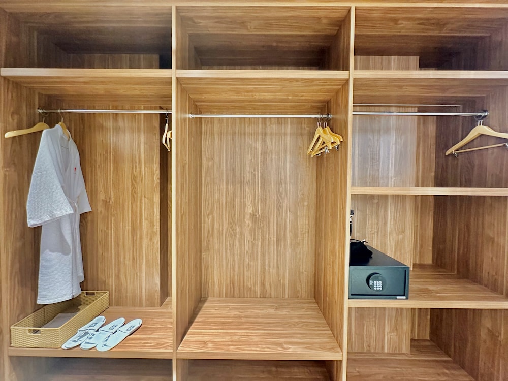 deluxe double with sea view, our room is spacious, the mattress is very comfortable, good hot water, complete amenities, water hiter functions well, safe deposit is available. We are very happy with the AC which functions well, and the smoking room doesn't feel stuffy.