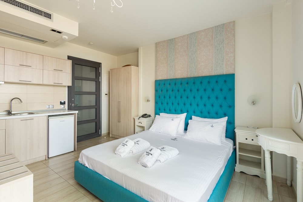 Mutfak var ama tencere tava tabak çatal vb gereçler yoktu, duşta perde veya duşakabin yok. Sifon sürekli su akıtıyordu, buzdolabında buzluğun kapağı kırıktı ve oda içinde gece gğndğz nerden geldiğinş anlayamadığımız bir ses geliyordu. Ayrıca fotoğraflarda kendi plajı var gibi duruyor ama yok ücretli plaj mevcut