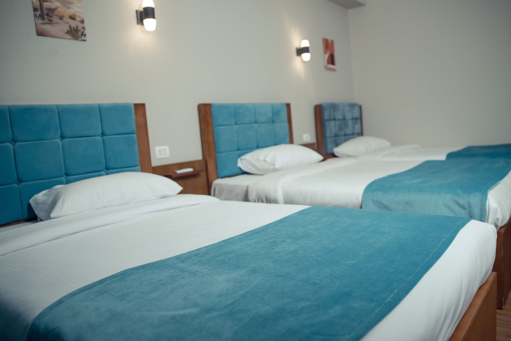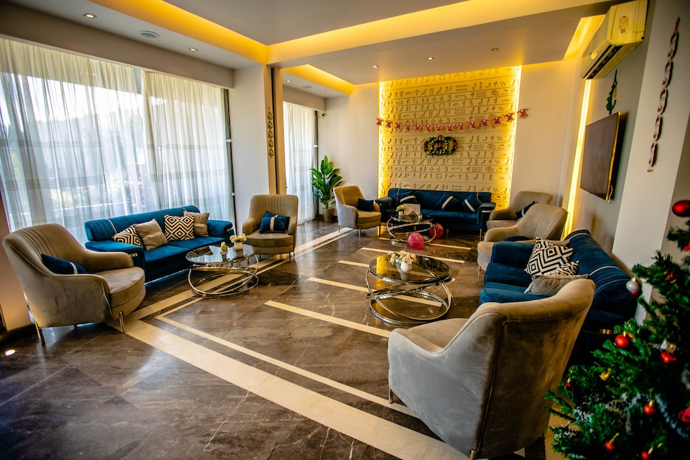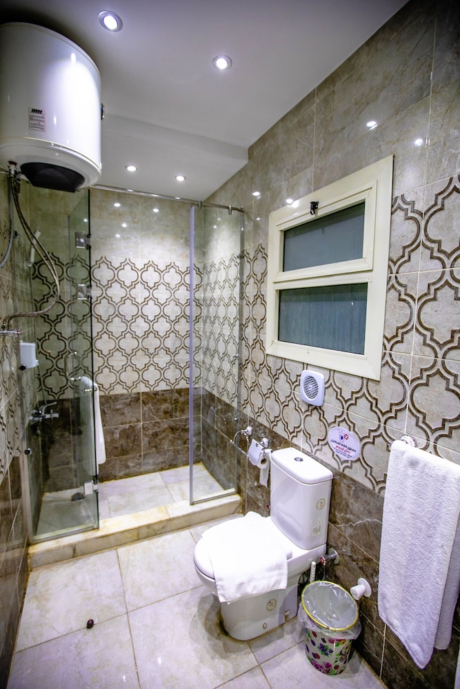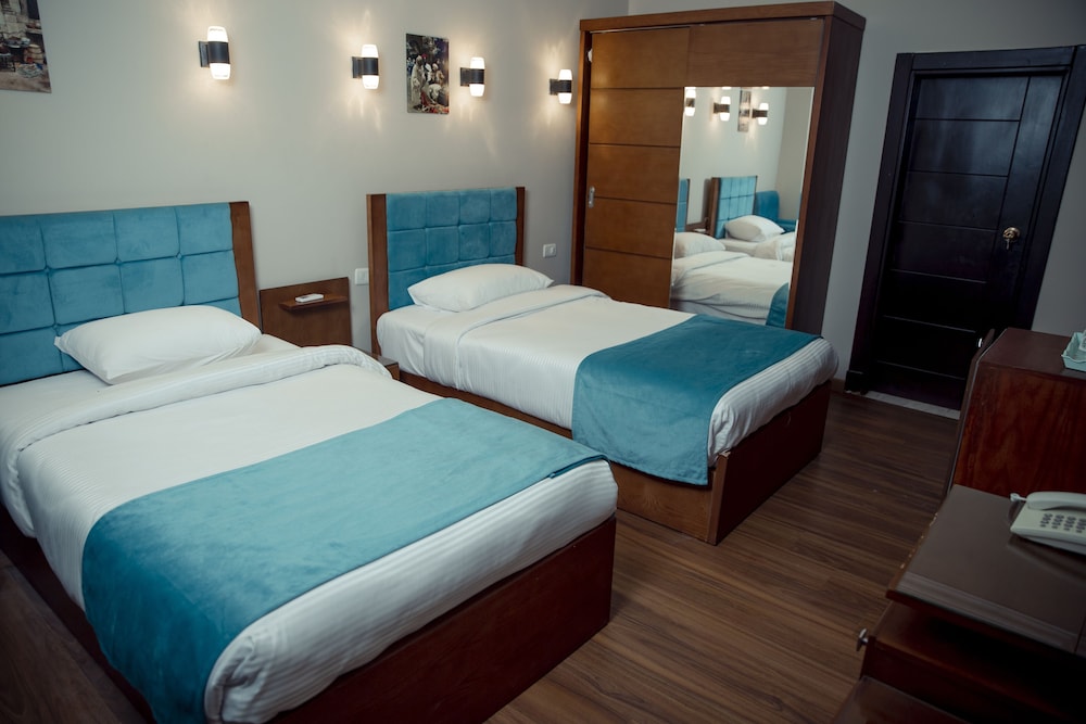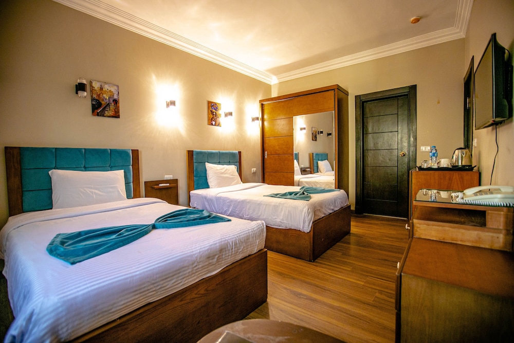 The staff at the hotel was very welcoming and helpful. The decor in the common areas was nice, just like the pictures. Eventhough their aren’t eating places from a walkable distance, you can eat the restaurant hotel. It has a vast roof terrasse with a view of the pyramids. The food there is good and affordable. If you want to eat outside, I would suggest getting there by Uber which is very convenient and cheaper than getting a personal driver. In fact, it would be better to have an egyptian SIM card for when you’re outside and sometimes at the hotel too since the WiFi is not always stable. The bedroom were big enough. In my opinion, the bathroom should be changed, but for 1-2 nights it was fine. Also, for the breakfast menu, it lack options. Overall, our stay was fine.