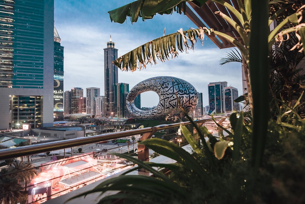 The pool has a great view on the museum of future and the gym room is super modern.