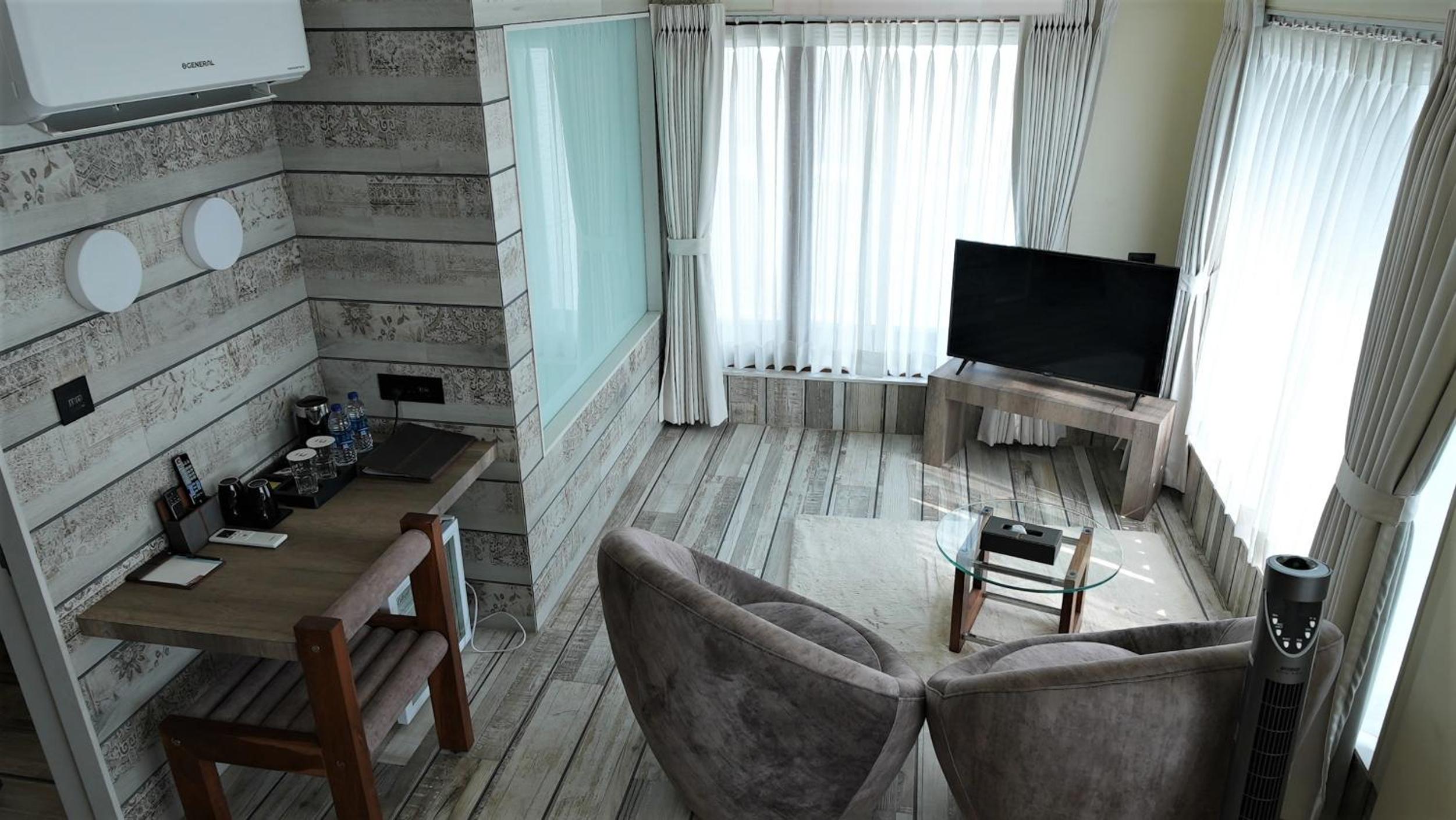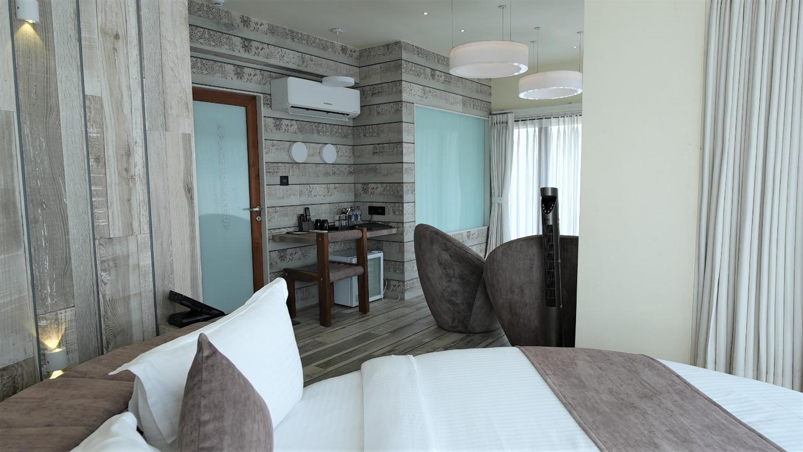 If you appreciate design and attention to detail, this is the hotel for you. It's designed with guest comfort in mind, featuring large, bright windows, spacious and comfortable rooms just like in the photos, a gym with a wonderful massage chair, and a terrace. The restaurant is excellent, and the staff is very friendly.Perfect location near the train station and textile market.