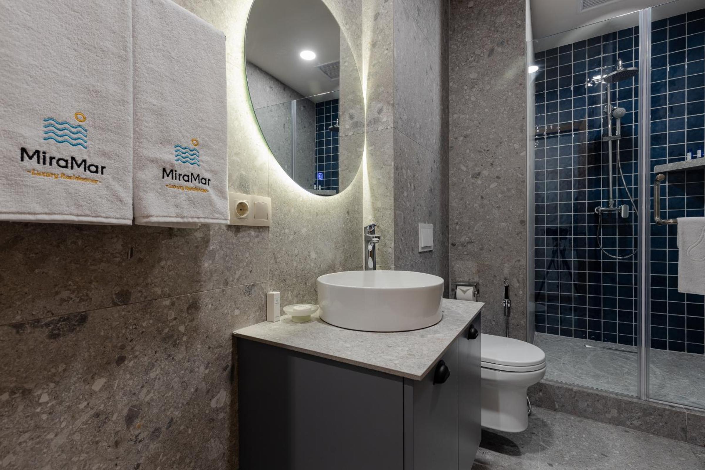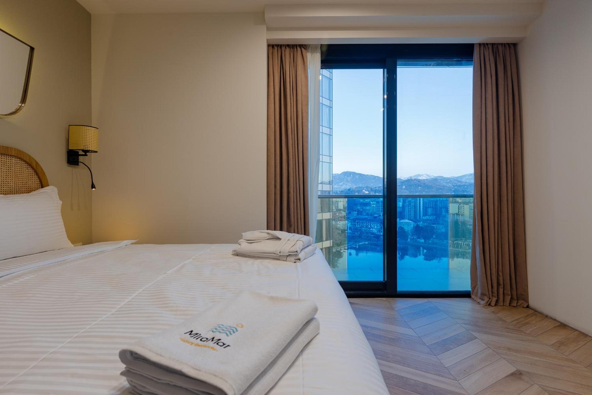 MiraMar Luxury Residences in Batumi offers a 5-star experience with a garden, restaurant, and bar. Enjoy air-conditioned rooms with modern amenities and some with fully equipped kitchens. Explore nearby attractions like The Neptun Fountain and Batumi Beach.