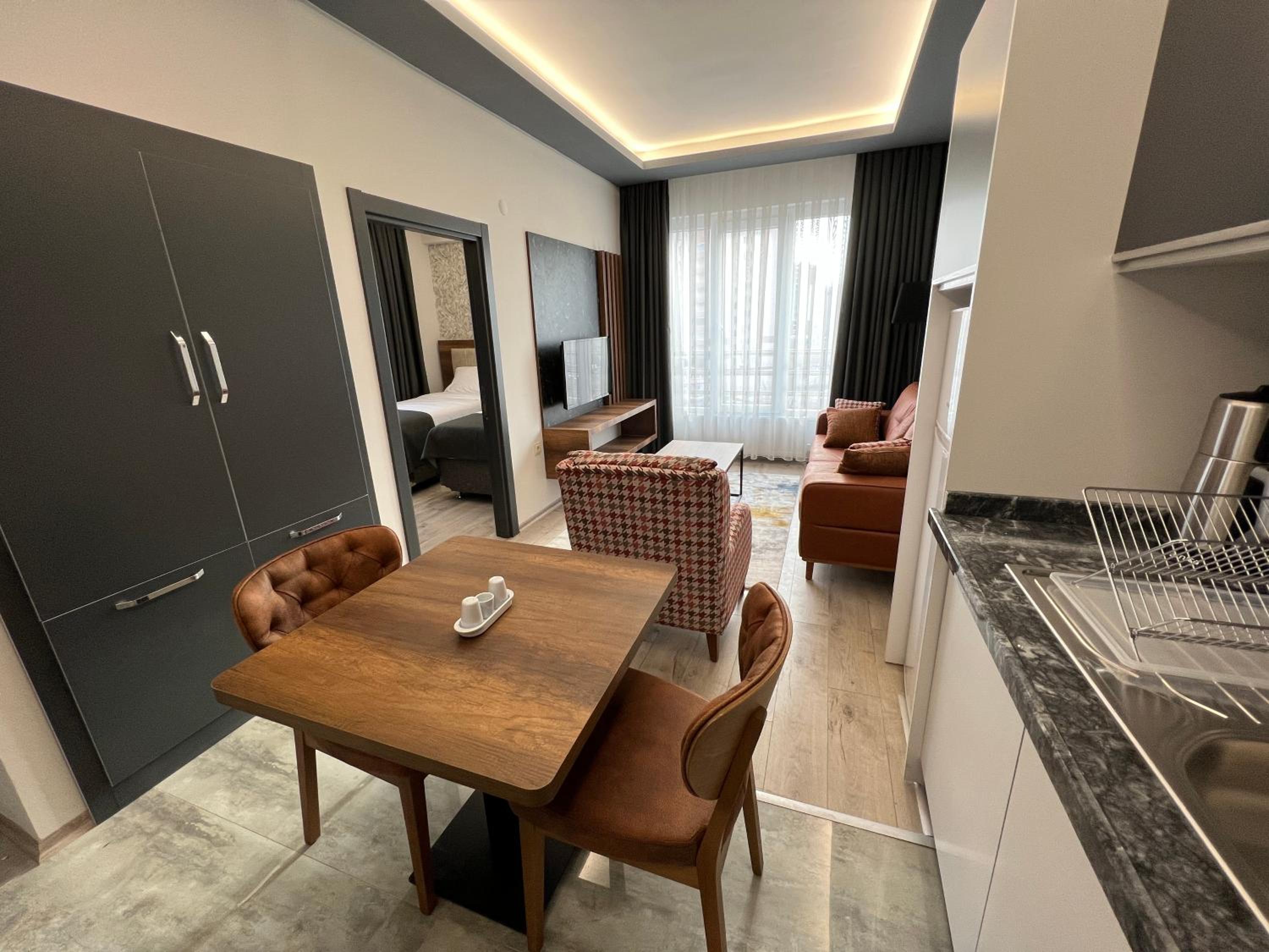Fiquei apenas duas noites e foi muito satisfatória a experiência staff muito gentil, apartamento limpo e com todas comodidades necessárias para ter uma boa estadia. Localização central e nas proximidades há várias opções de restaurantes e a 10 minutos de caminhada até o castelo de Kayseri. Café da manhã não está incluso mas se preferir pode tomar o café da manhã no próprio Apart hotel mediante ao pagamento de uma taxa extra. Recomendo este local a outros hospedes em relação ao custo x benefício fli muito bom.