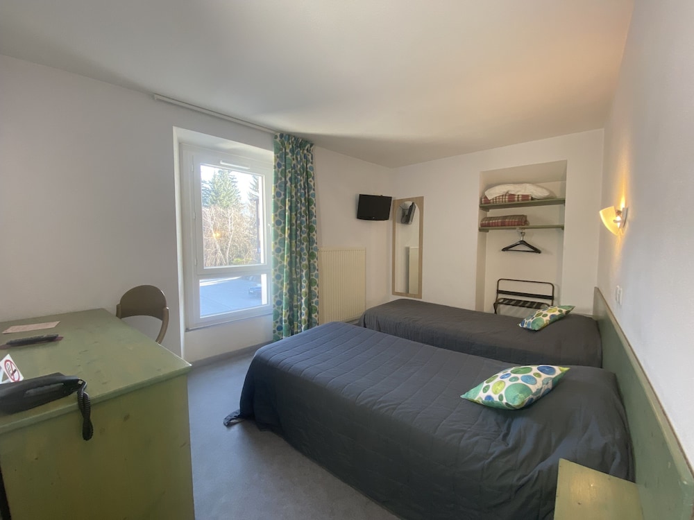 Hotel sur une route passante chambre vraiment limite niveau confort et décoration restaurant qui ne sert plus après 21h vraiment sans grand intérêt le seul bon point est le monsieur brun à l’accueil et au bar très sympathique.