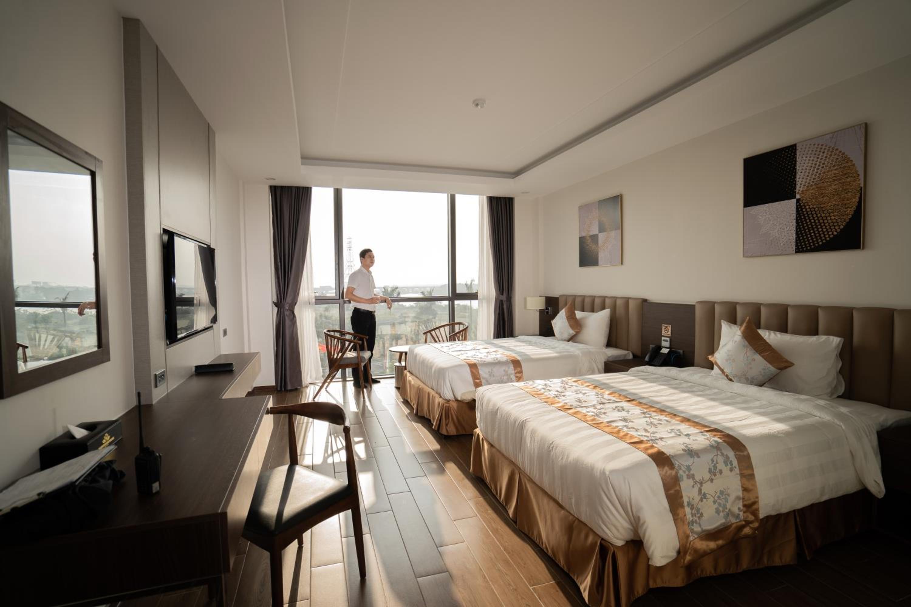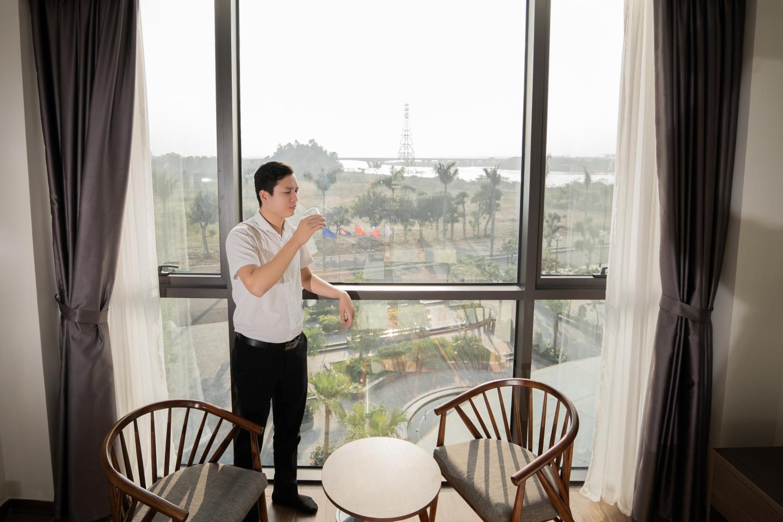 Located next to a meandering river dividing Nghệ An Province and Hà Tĩnh Province, next to Vinh City. Delightful scenic surrounding allowing pleasant morning or late afternoon walk around the hotel at the waterfront. It has a wonderful open dining patio with excellent view of sunset while enjoying a beer, a cocktail or a glass of wine and delicious Vietnamese/Western/Taiwanese food. Spacious room with a hint of freshly cleaned scent. Besides Vietnamese, hotel has staff who can communicate in English or Chinese. I would like to visit it again next time I am in the