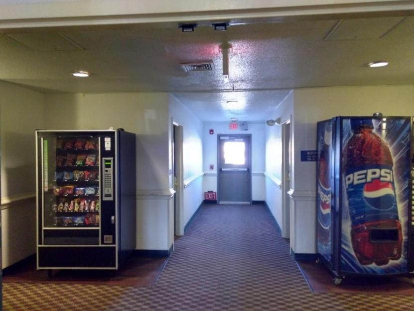 A lot of people standing around the hotel and office people not there after 7 pm