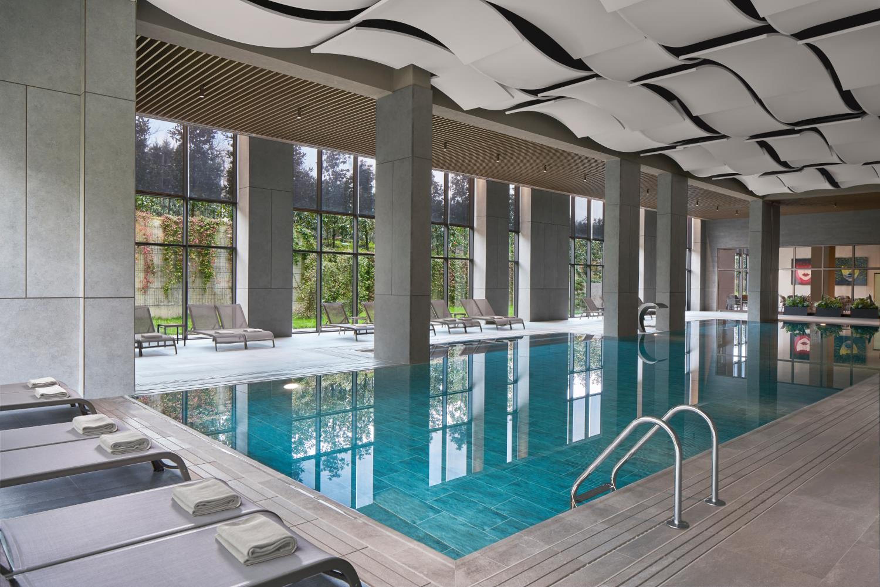 Dip into our seasonal outdoor swimming pool or rejuvenate your spirit at our spa and wellness center, which features an indoor pool, sauna, and hot tub, ensuring relaxation at every turn.