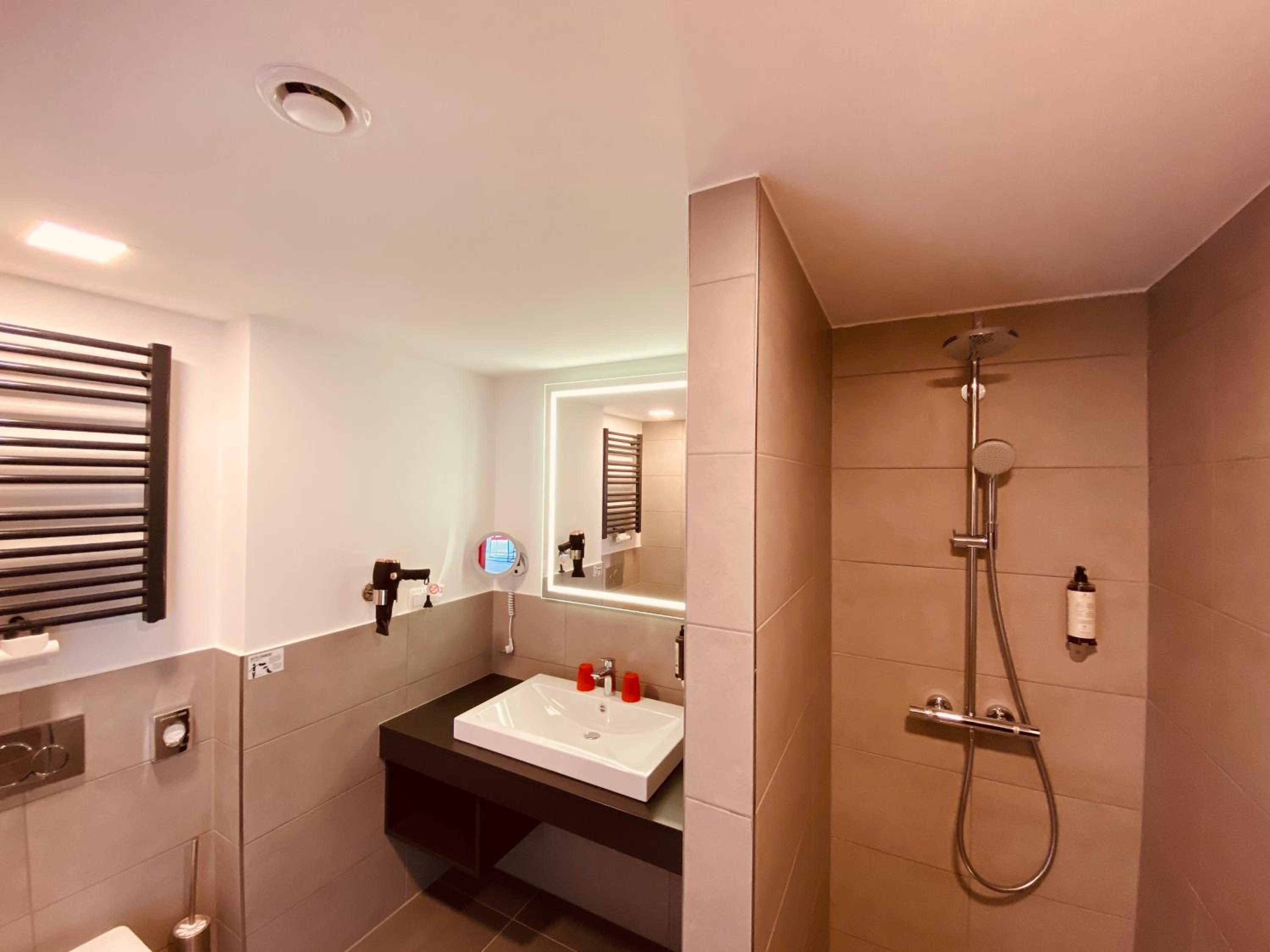 DORMERO Hotel Hof, nestled in Hof, offers elegant rooms with modern amenities including a flat-screen TV, safety deposit box, and plush bedding. The private bathrooms are stocked with complimentary toiletries, ensuring a comfortable stay for every guest.