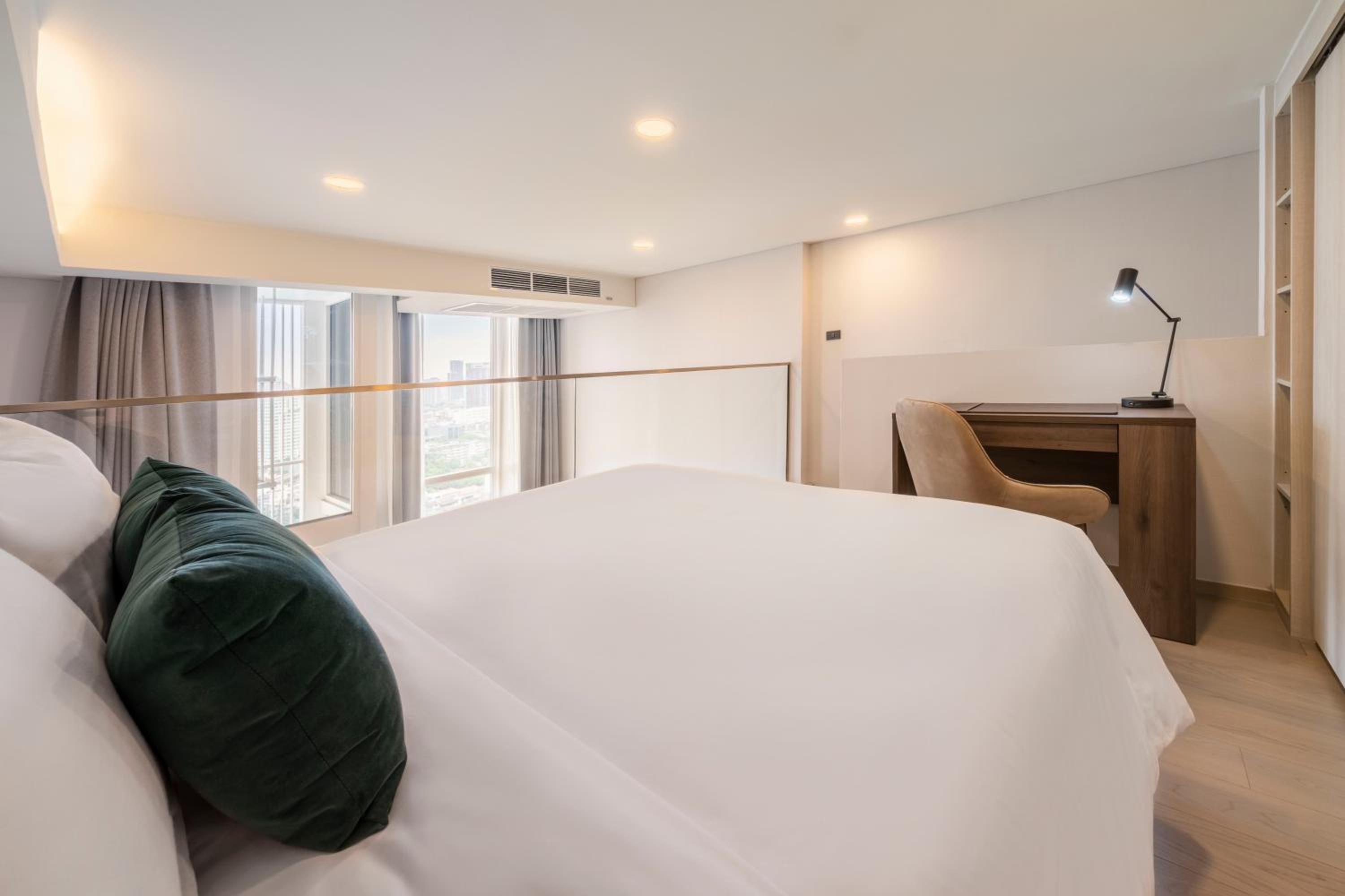 Fantastic location, a short walk from the BTS, and lots of shops and food places. The rooftop pool was amazing, and the free steam room was a fun bonus.