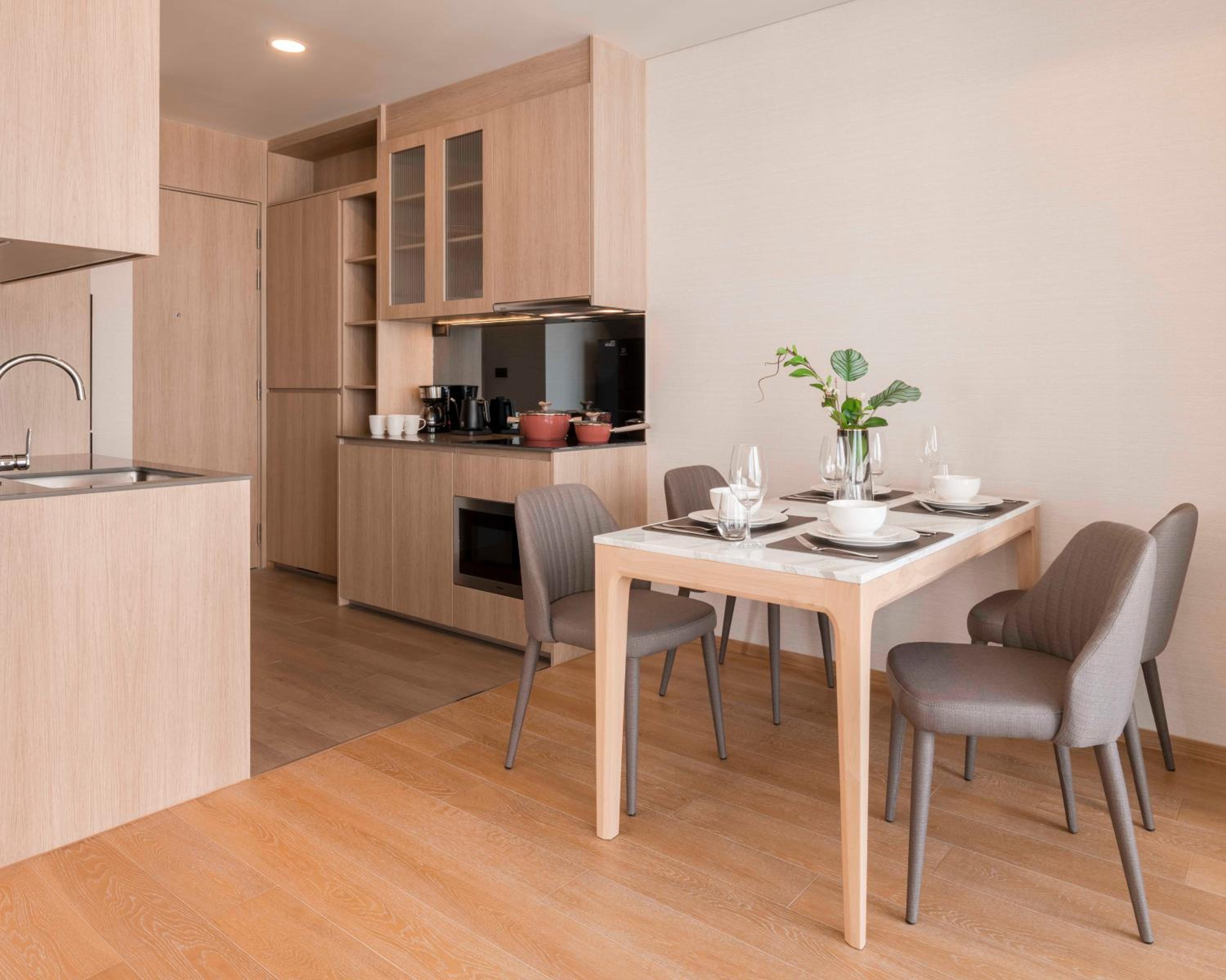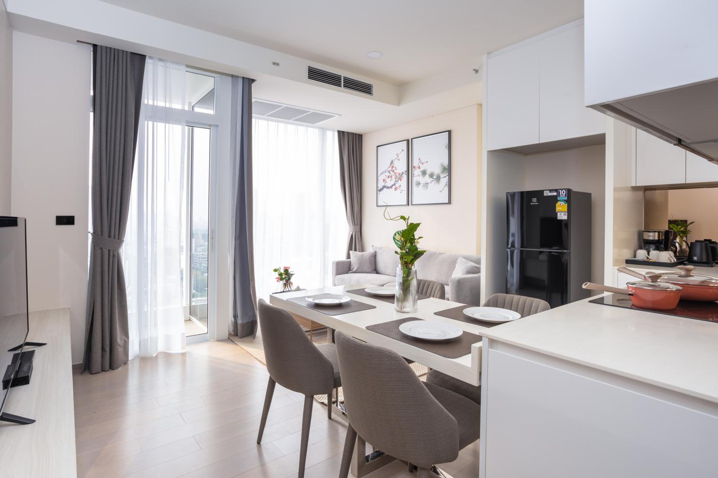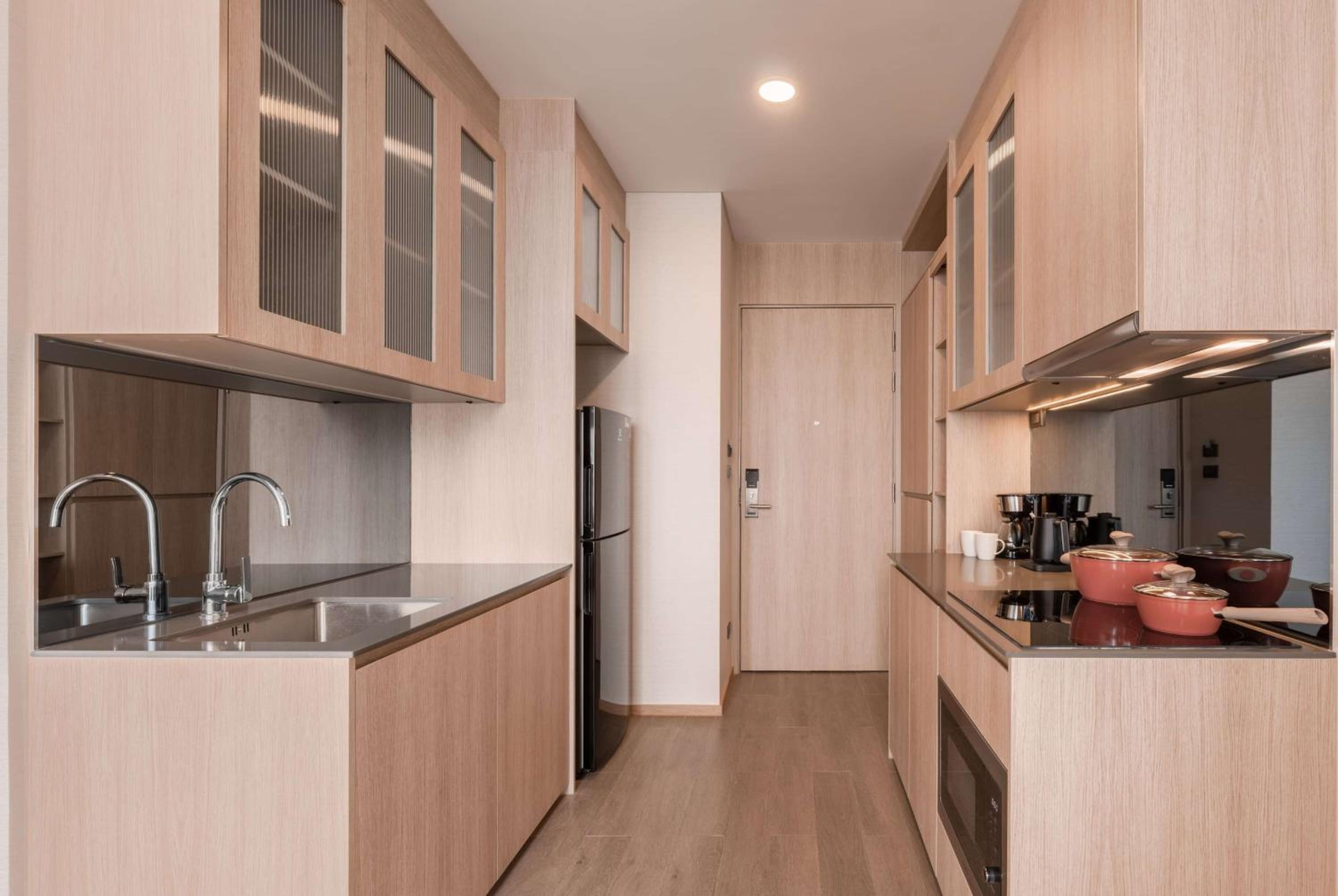 The building itself has a very luxe feeling from the moment you walk in. Each of the rooms was designed to be a condominium, so there is a full kitchenette and laundry machine in each unit. The staff was very helpful and there were plenty of amenities. The Ekkamai train station is also a stones throw away, so it felt very connected to the city via transit.