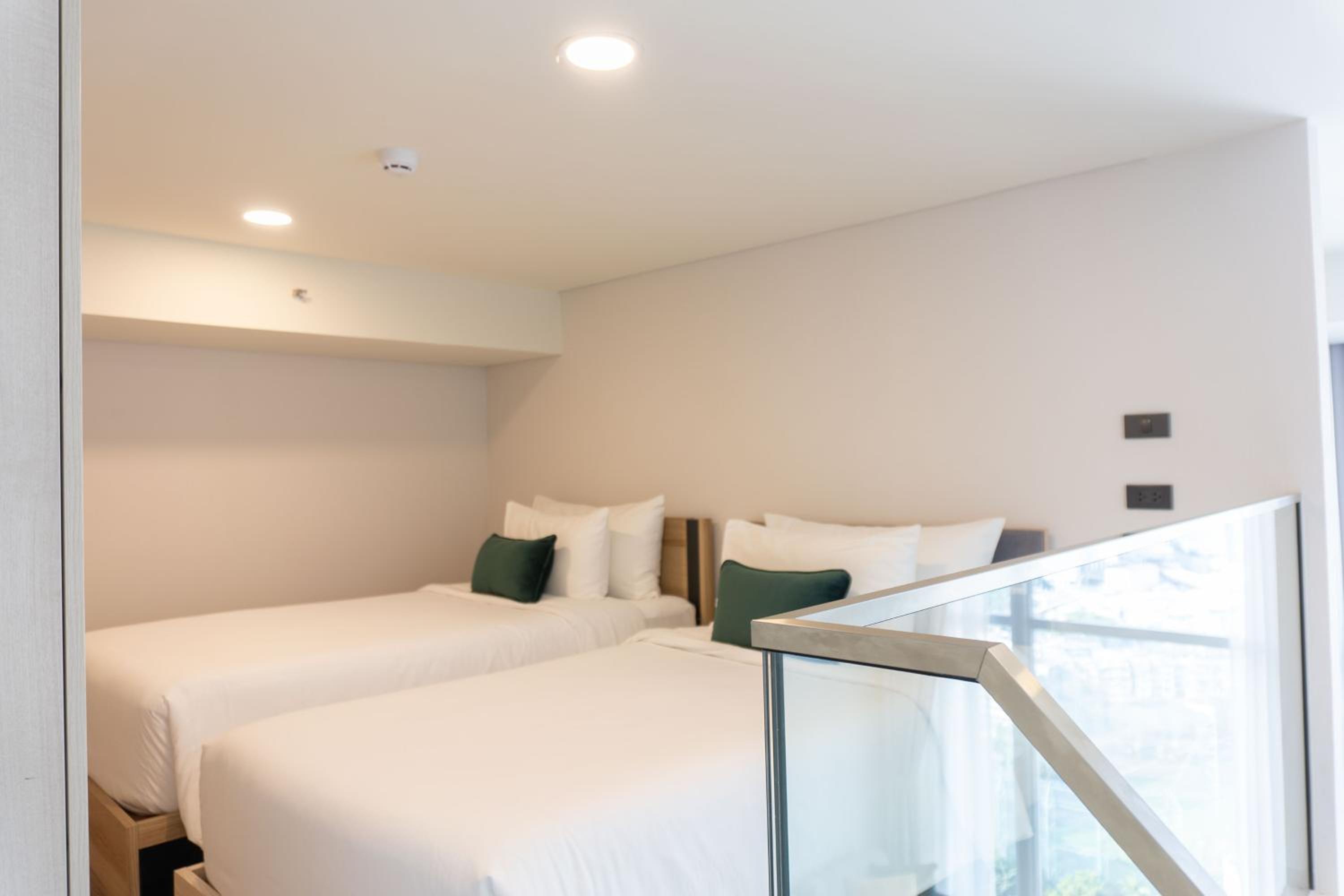 We booked a 2-bed suite as a family of 3 but the room configuration was not very comfortable; no en-suite for the master bedroom but the smaller queen bed room did have direct access to the only bathroom; soit was a bit uncomfortable using the bathroom as very easy to hear if your in the smaller bedroom. TV channels limited to a few local Thai channels only.