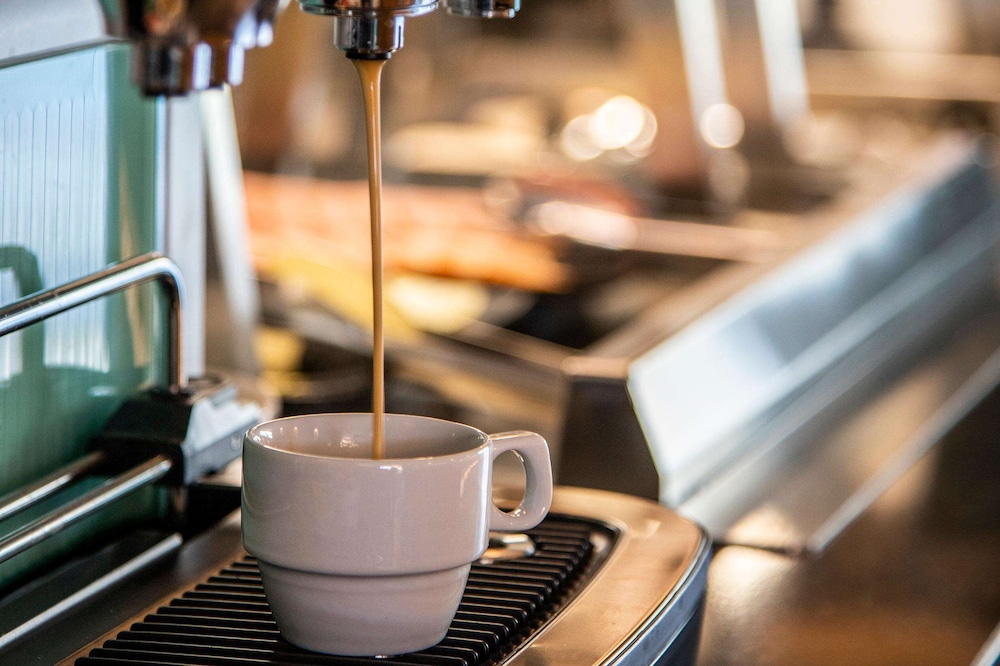 Fridge & coffee maker in the room