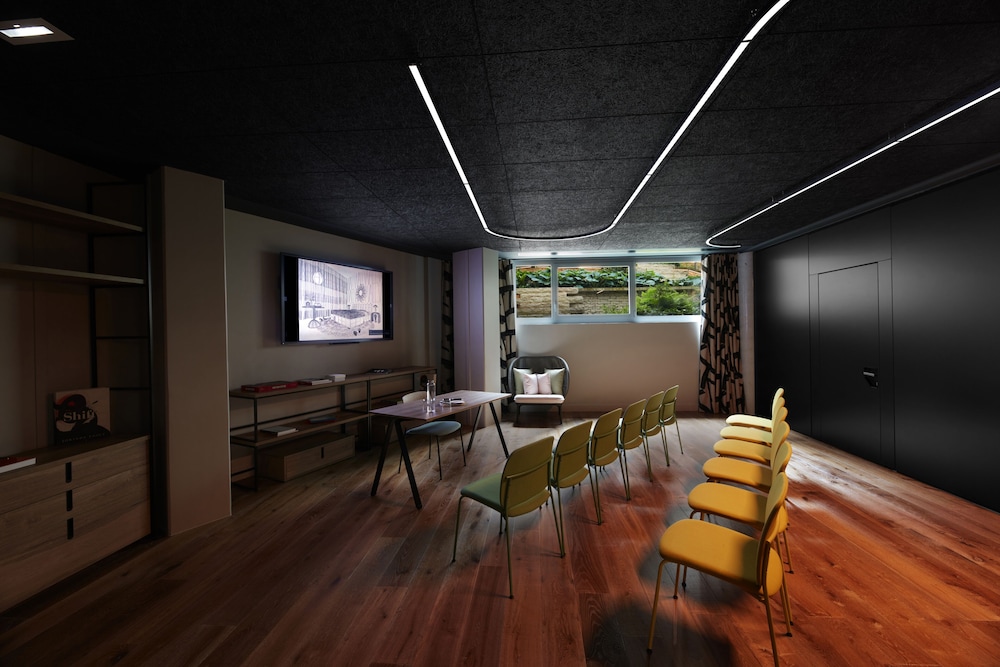 Modern and contemporary hotel with floors designed by different artists. Very friendly and helpful staff, good breakfast buffet and nice restaurant. The hotel entrance is right on the street - that can be a challenge for car pick ups