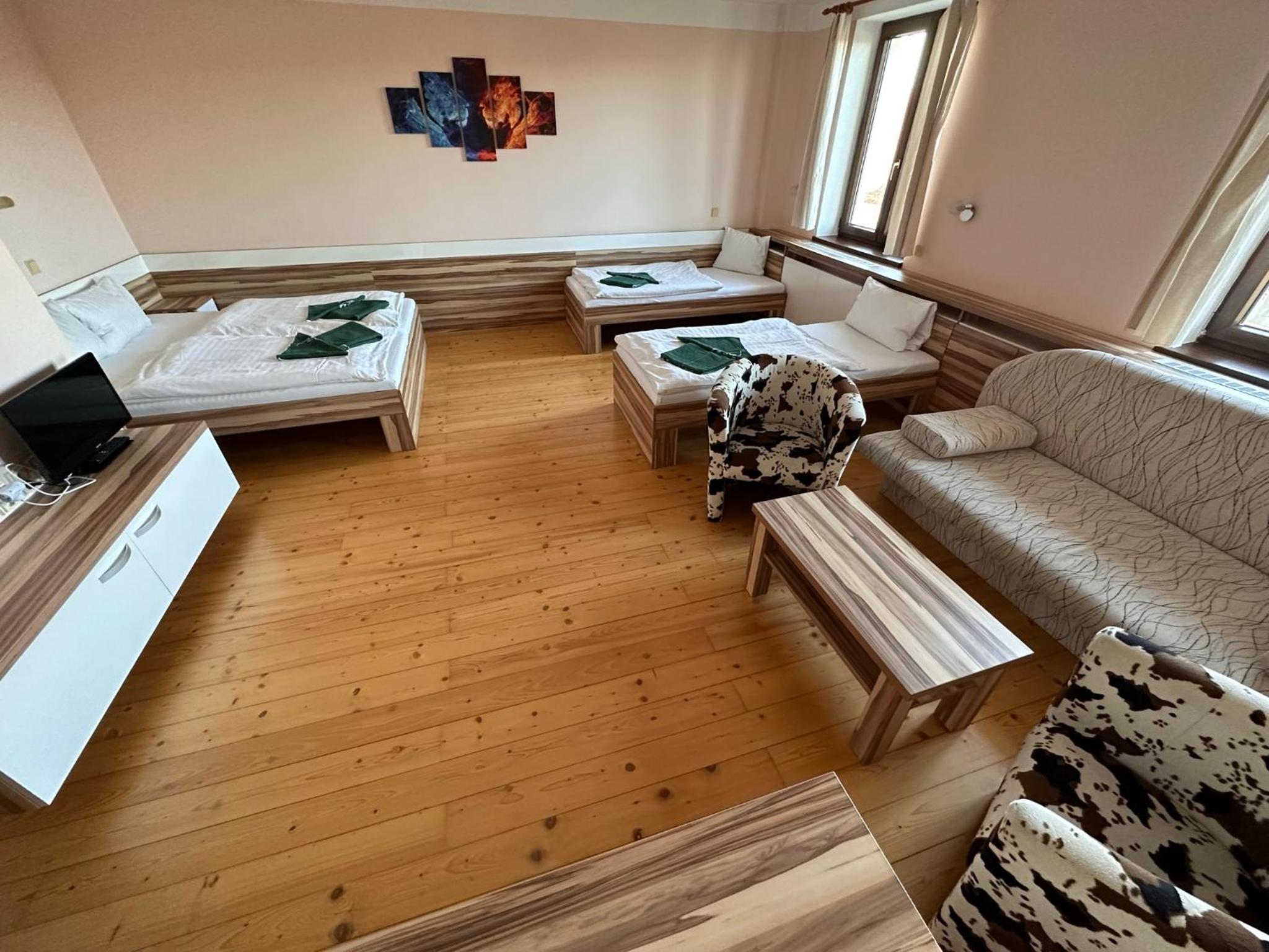 Protivná recepční, majitel hodnoti takzvané poškození majetku aniž by ho viděl. Psi jsou povolené ale nesmí štěkat jinak si je musíte brát sebou