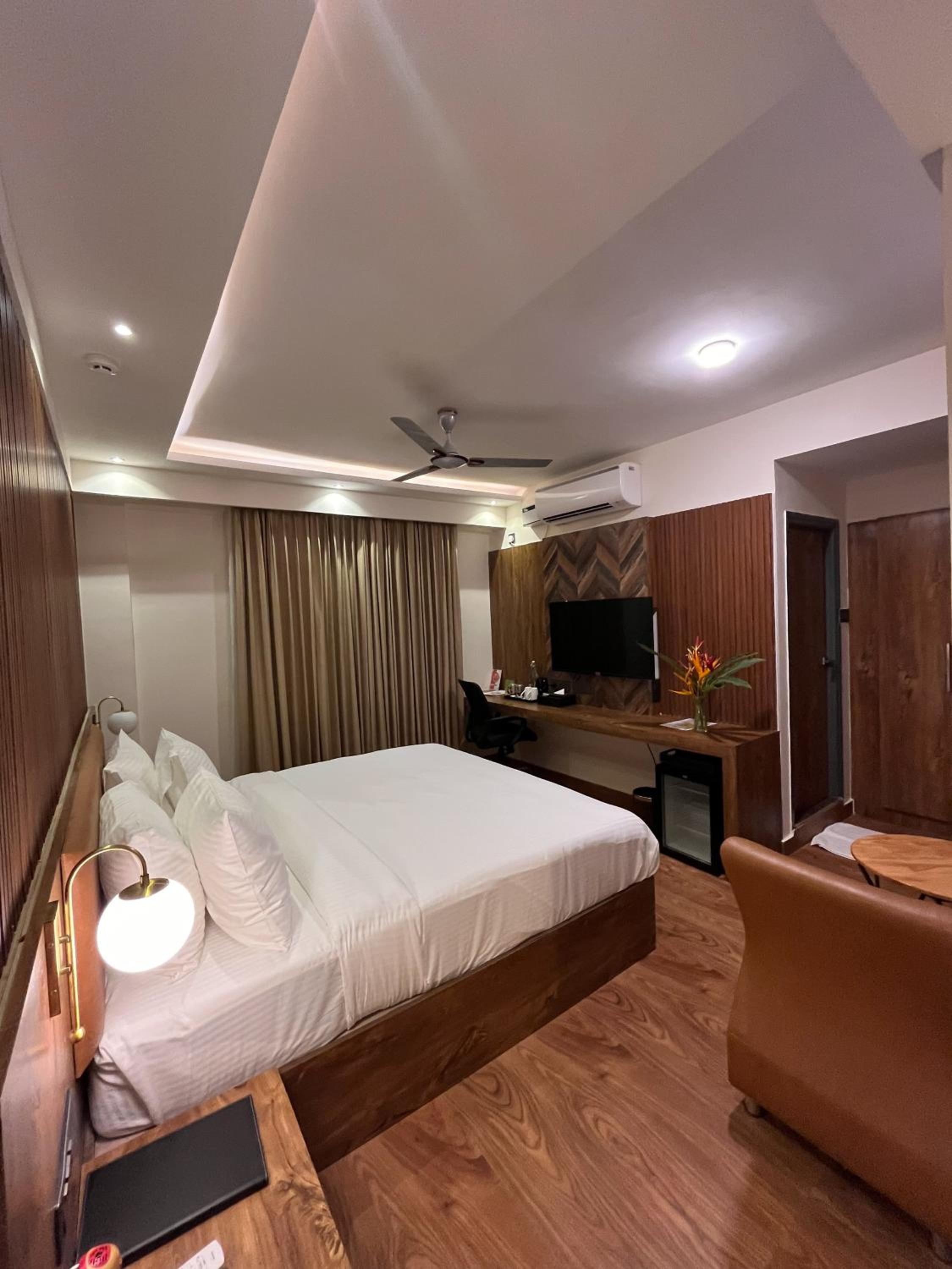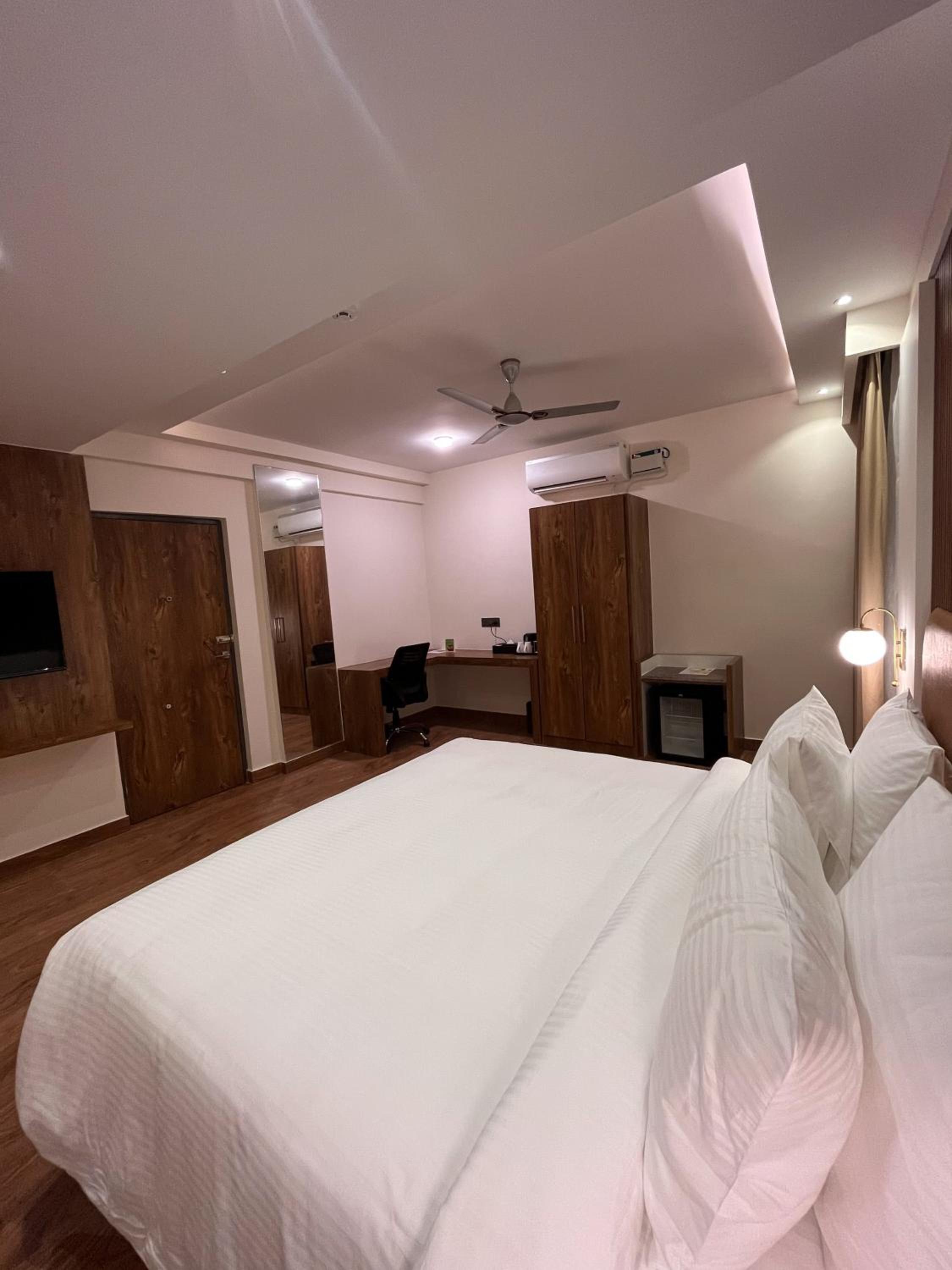 Clarks Inn, Airport Bangalore offers air-conditioned rooms with modern amenities like a flat-screen TV, minibar, and private bathroom, ensuring a comfortable stay for all guests.