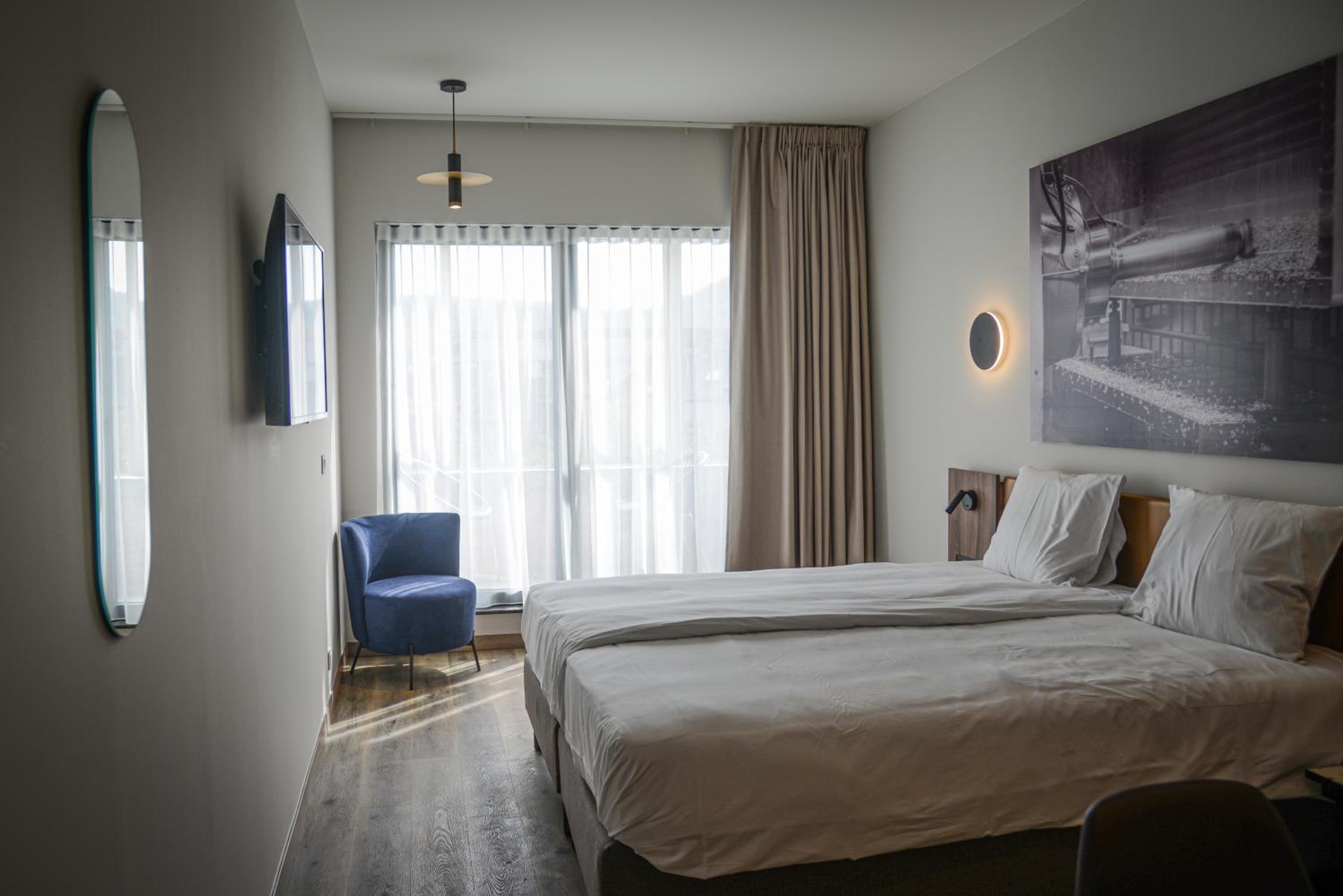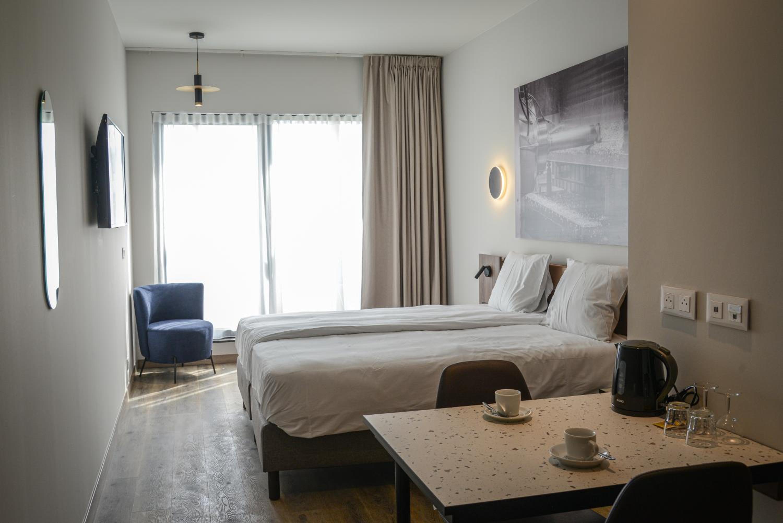 Accueil efficace et aimable, chambre idéalement située, à l'écart comme souhaité, très calme, spacieuse et bien agencée, avec une agréable terrasse couverte joliment aménagée. Décoration sobre mais élégante, juste ce qu'il faut d'espaces de rangement. Salle de bain fonctionnelle (malgré une légère fuite sous la porte de la douche) et d'une propreté irréprochable, comme l'ensemble du logement ! Ajoutez-y facilité d'accès et de stationnement, et vous aurez une étape idéale à Andenne ! Il faut bien sûr souligner le contexte très original, d'anciens locaux industriels, très opportunément ré-affectés !...